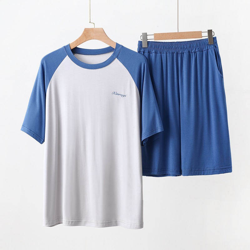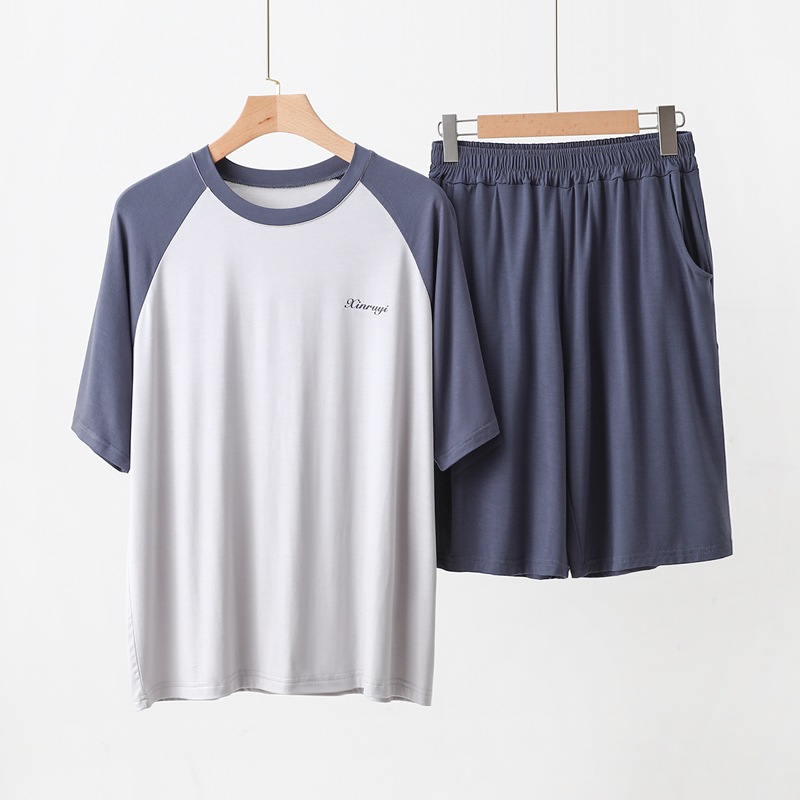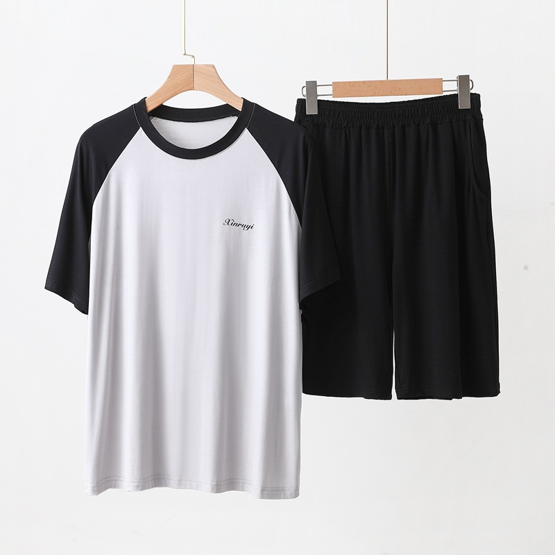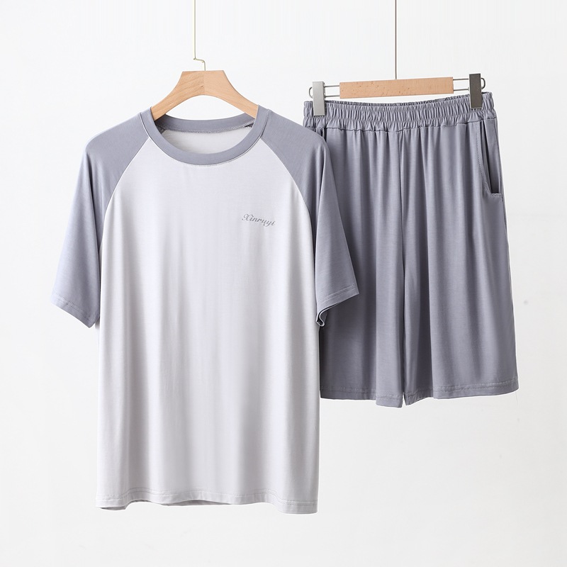 봄과 여름 남자의 라글란 스티치 모달 면 반팔 반바지 잠옷 세트 얇은 캐주얼 플러스 사이즈 가정 의류스토어 가기