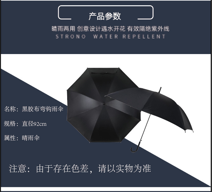 검은 우산 장례식 우산 장례식 홈 블랙 우산 장례식 우산 23 인치 8 뼈 블랙 후크 스트레이트 막대