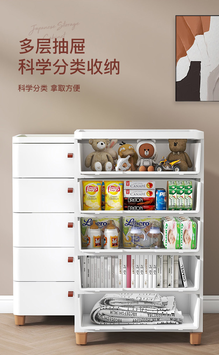 새로운 일본식 간단한 침대 옆 탁자 스타일 가정용 플라스틱 수납 캐비닛 서랍형 다층 보관 대용량스토어 가기