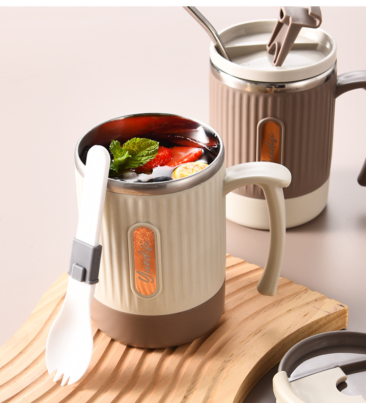 공장 직폭 304 스테인레스 스틸 커피 컵 머그잔 접이식 스푼 커플 머그잔 손 선물