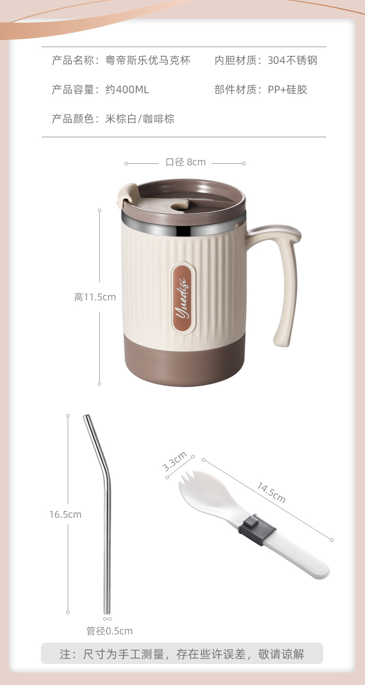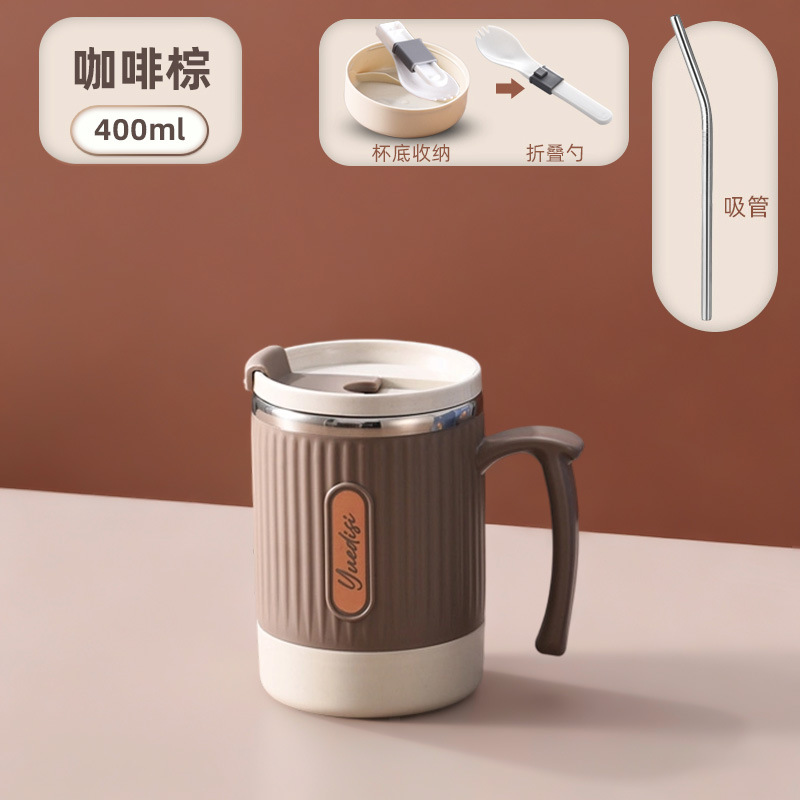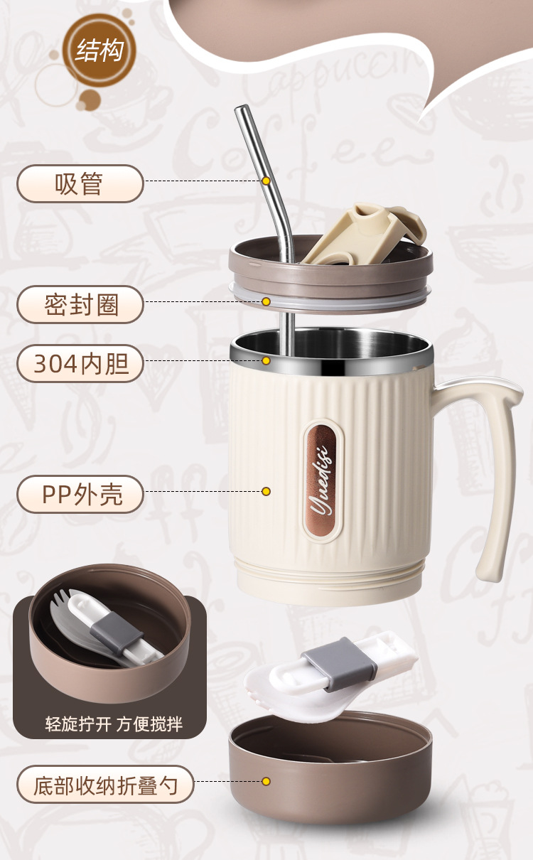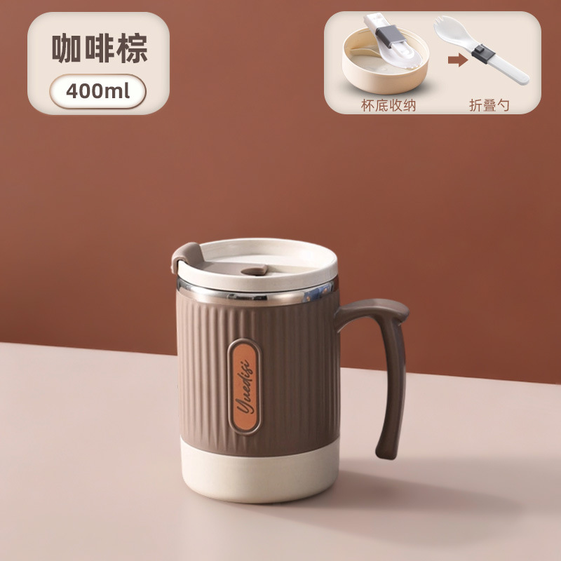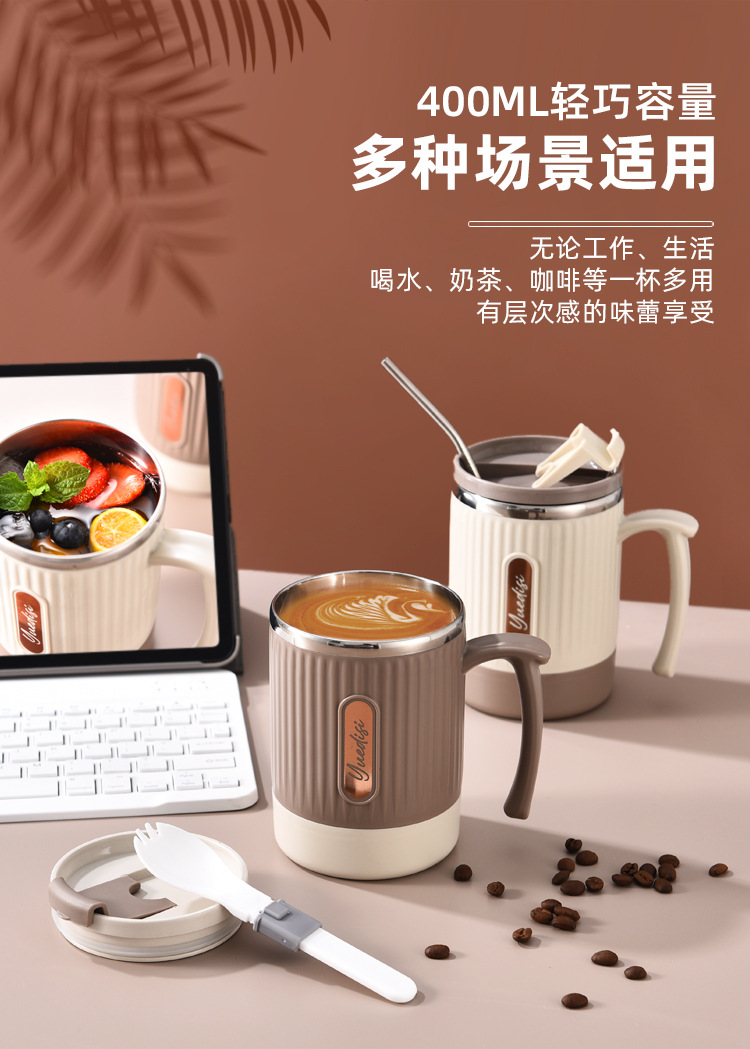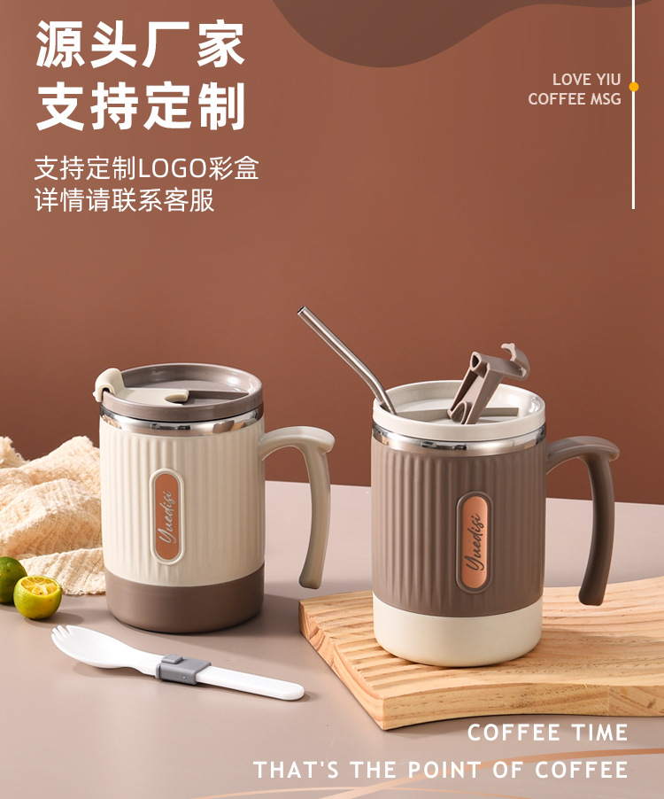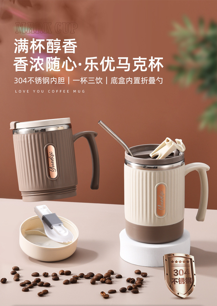 厂家直供 爆款304不锈钢咖啡杯马克杯带折叠勺情侣马克杯伴手礼品