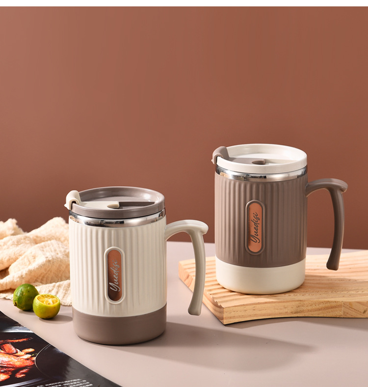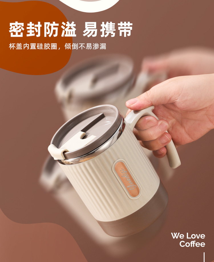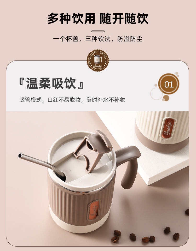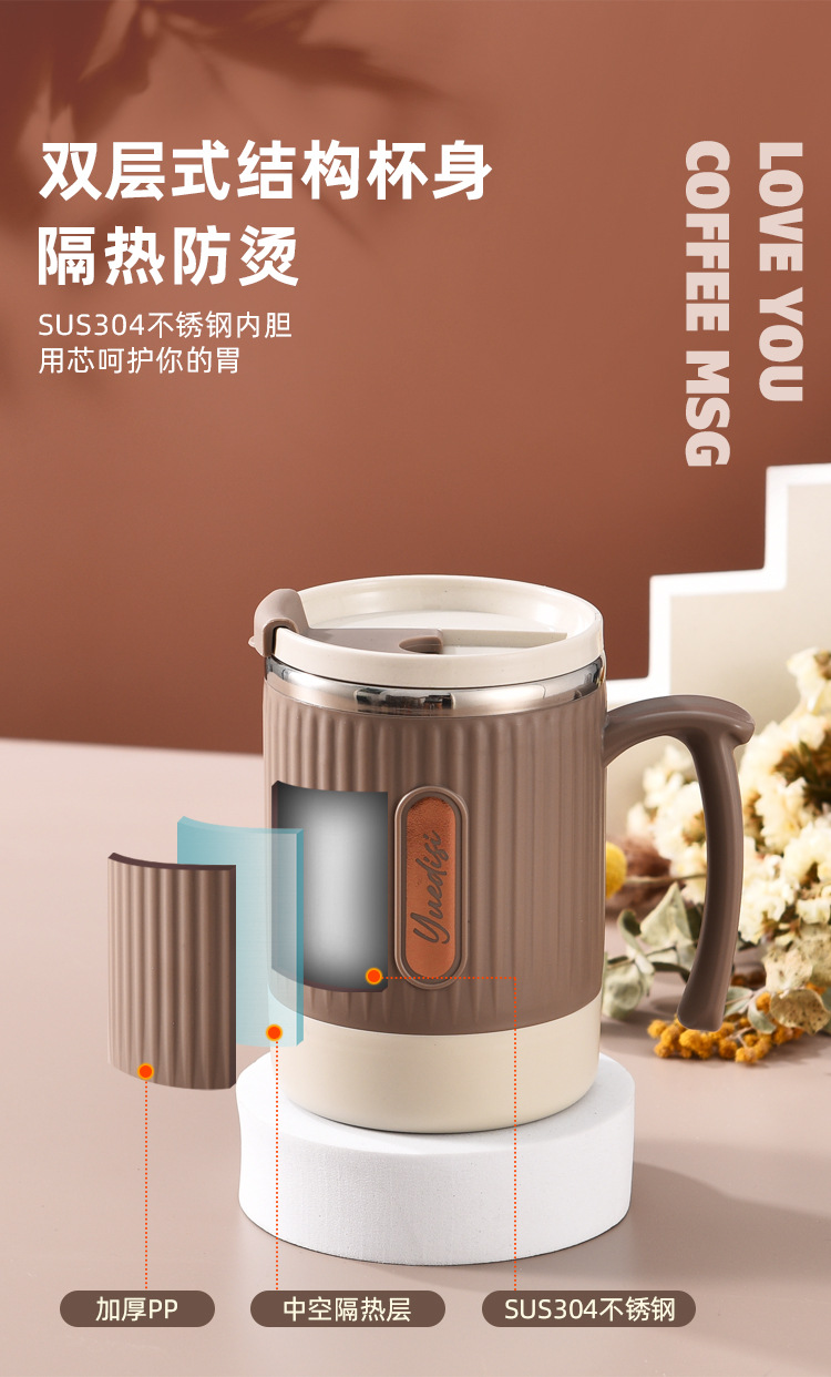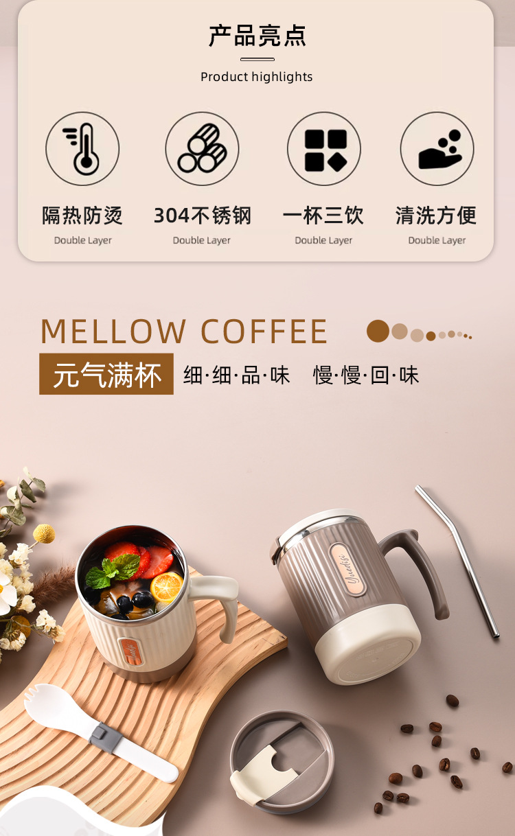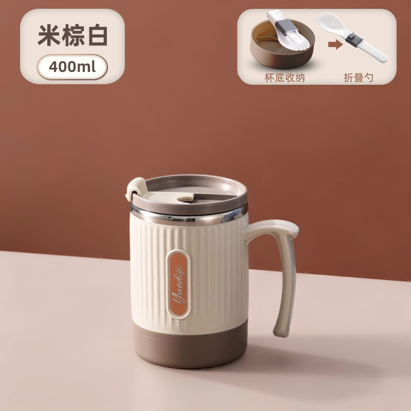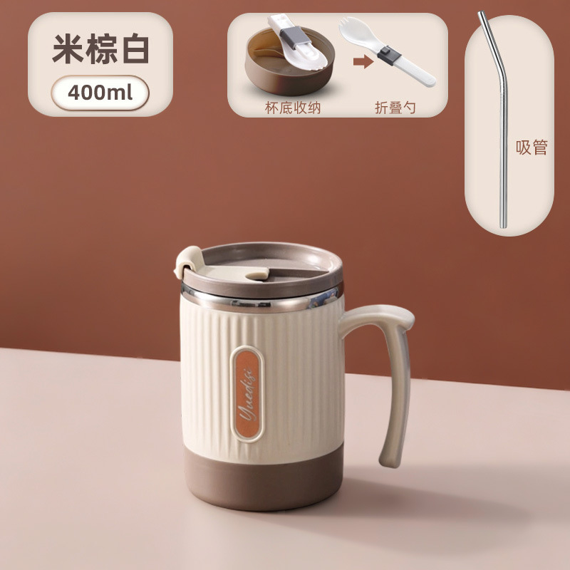 厂家直供 爆款304不锈钢咖啡杯马克杯带折叠勺情侣马克杯伴手礼品