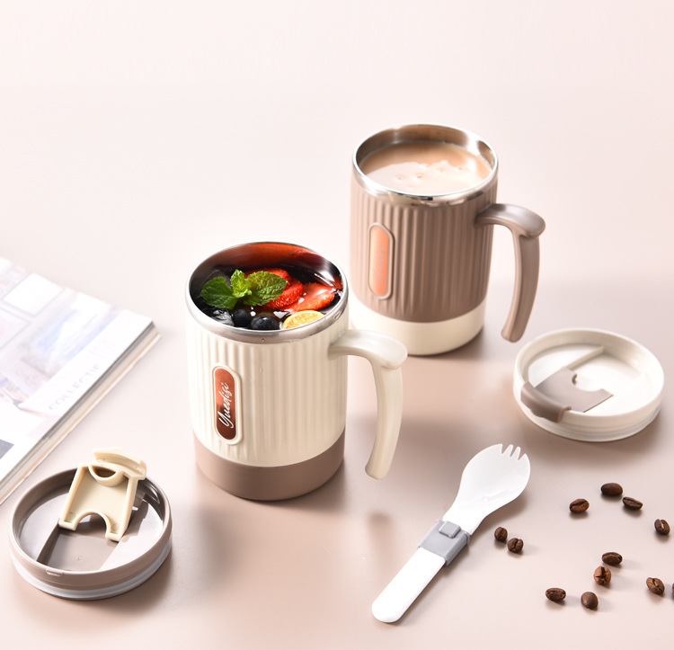 공장 직폭 304 스테인레스 스틸 커피 컵 머그잔 접이식 스푼 커플 머그잔 손 선물스토어 가기