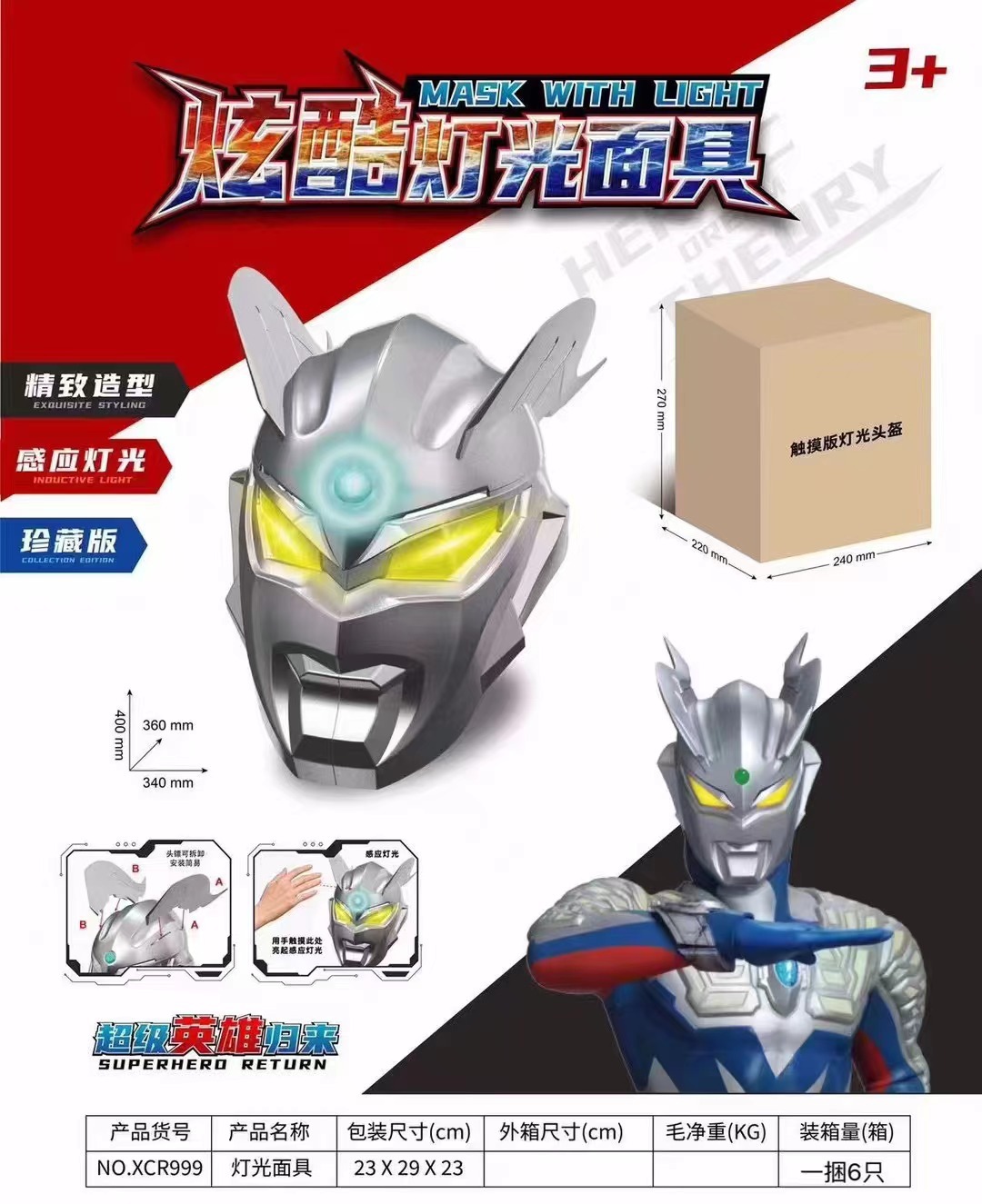 전면형 코스프레 디가 마스크 착용 가능 터치 조명 헬멧 성인 및 어린이용 6-12세 장난감스토어 가기