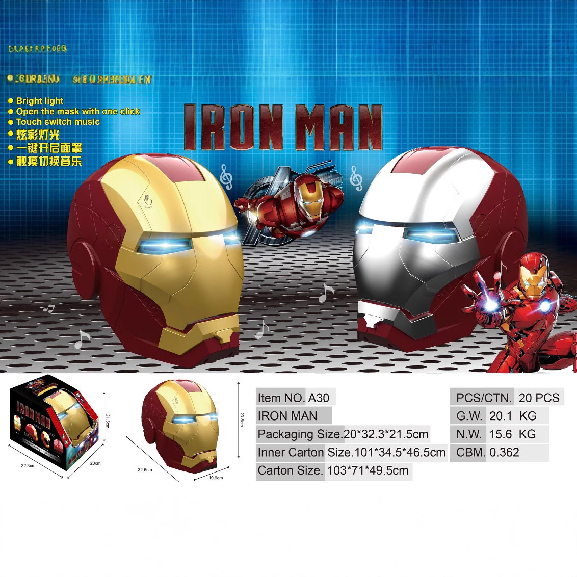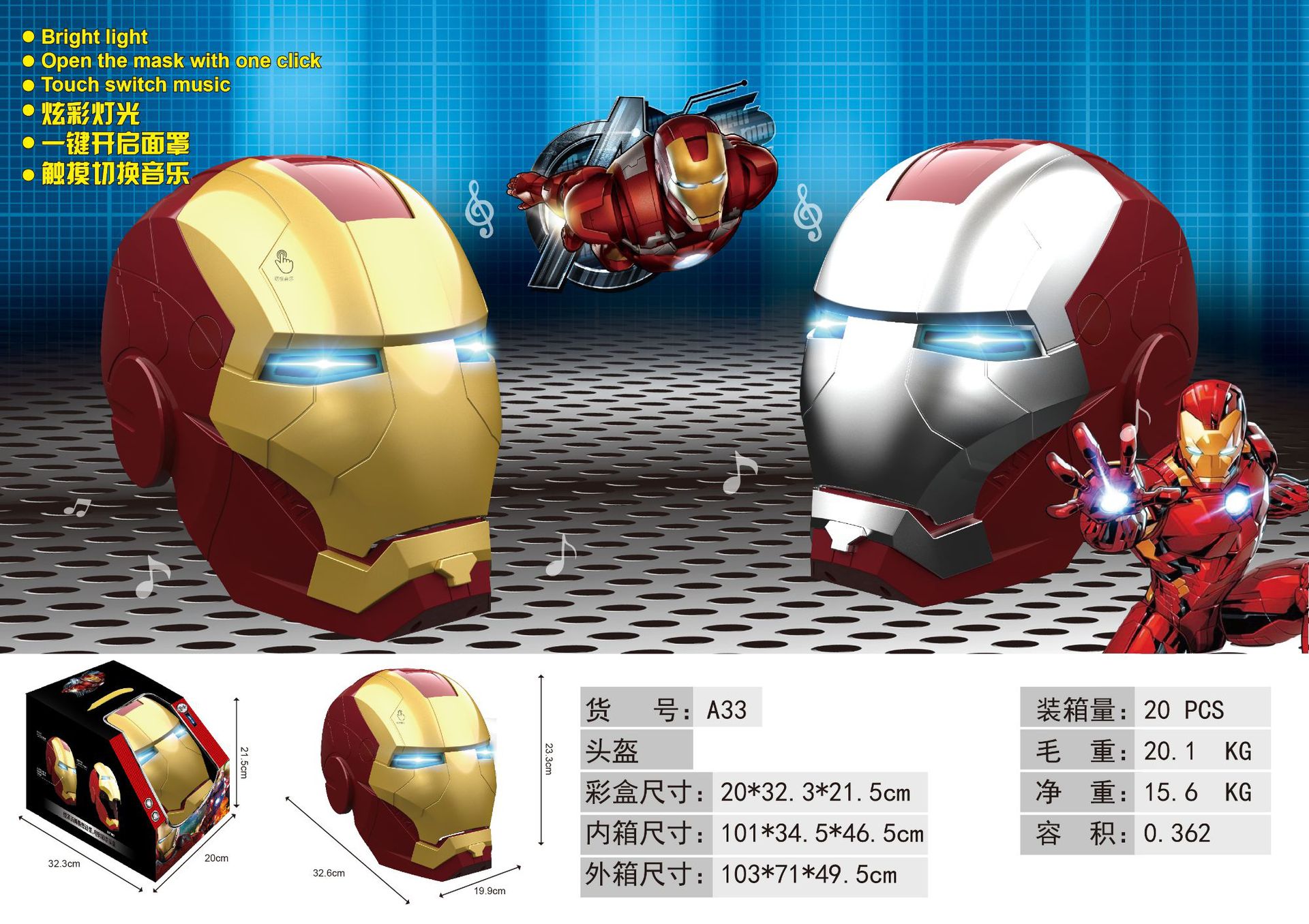 • [컬러박스 골드] 아이언맨 마스크 A33 [기본 영문포장, 중국어 포장을 원하시면 고객센터로 문의주세요]