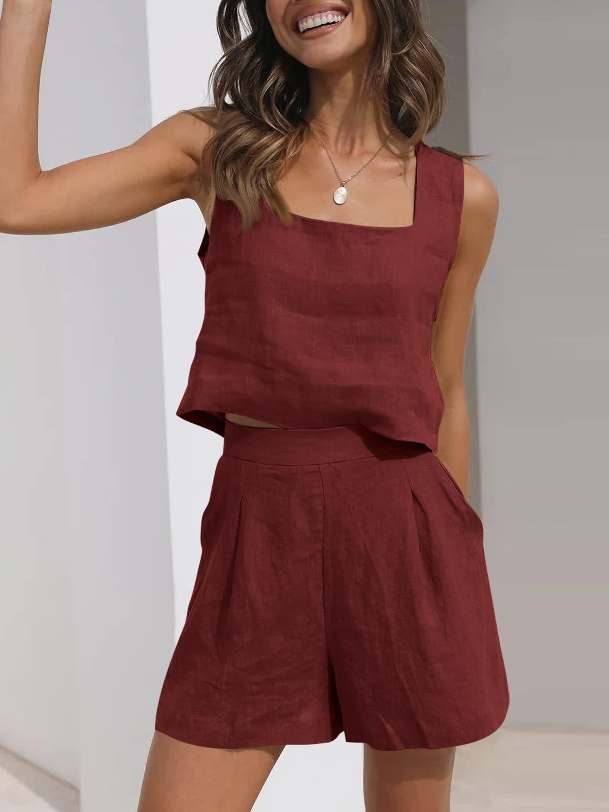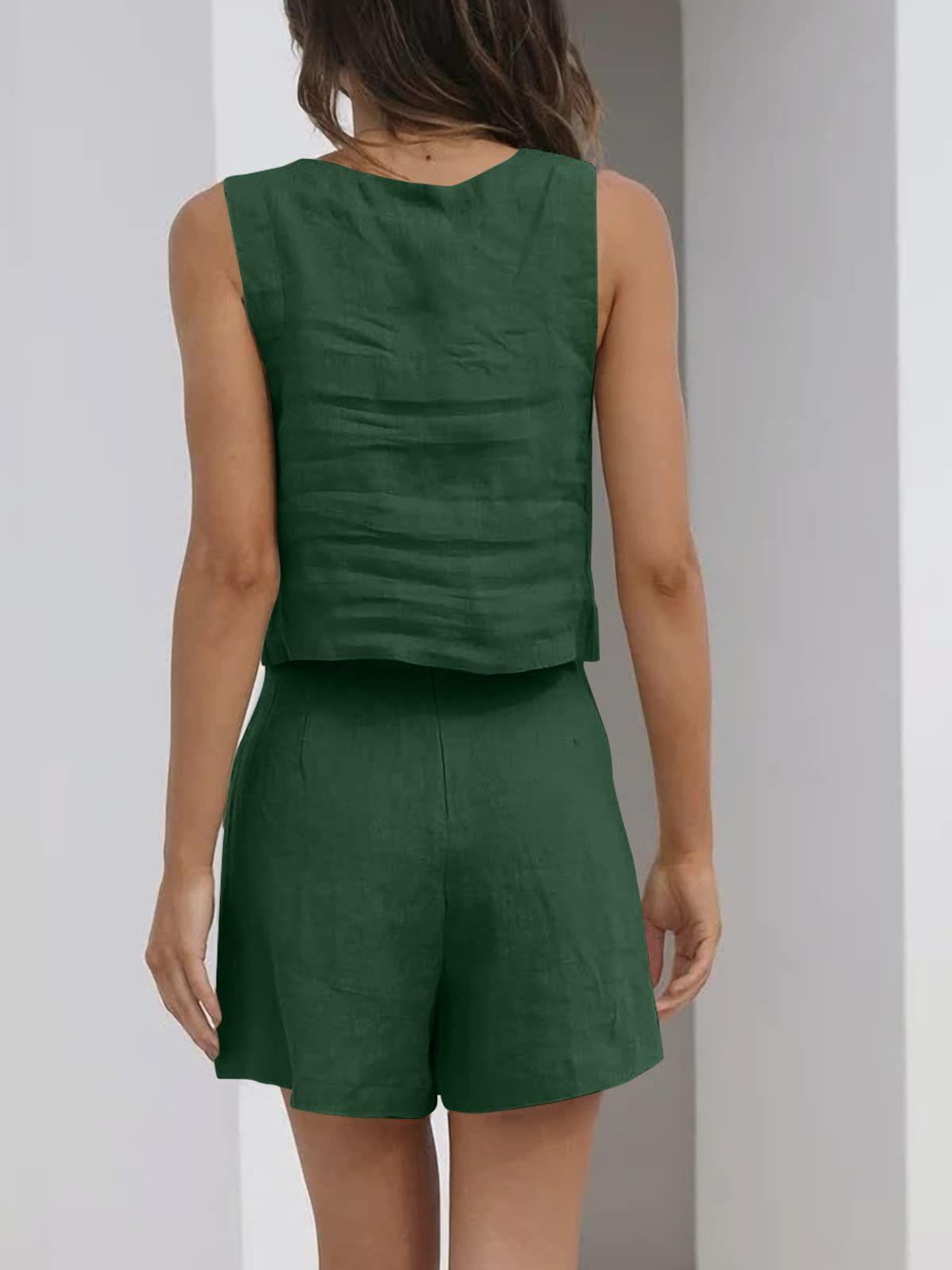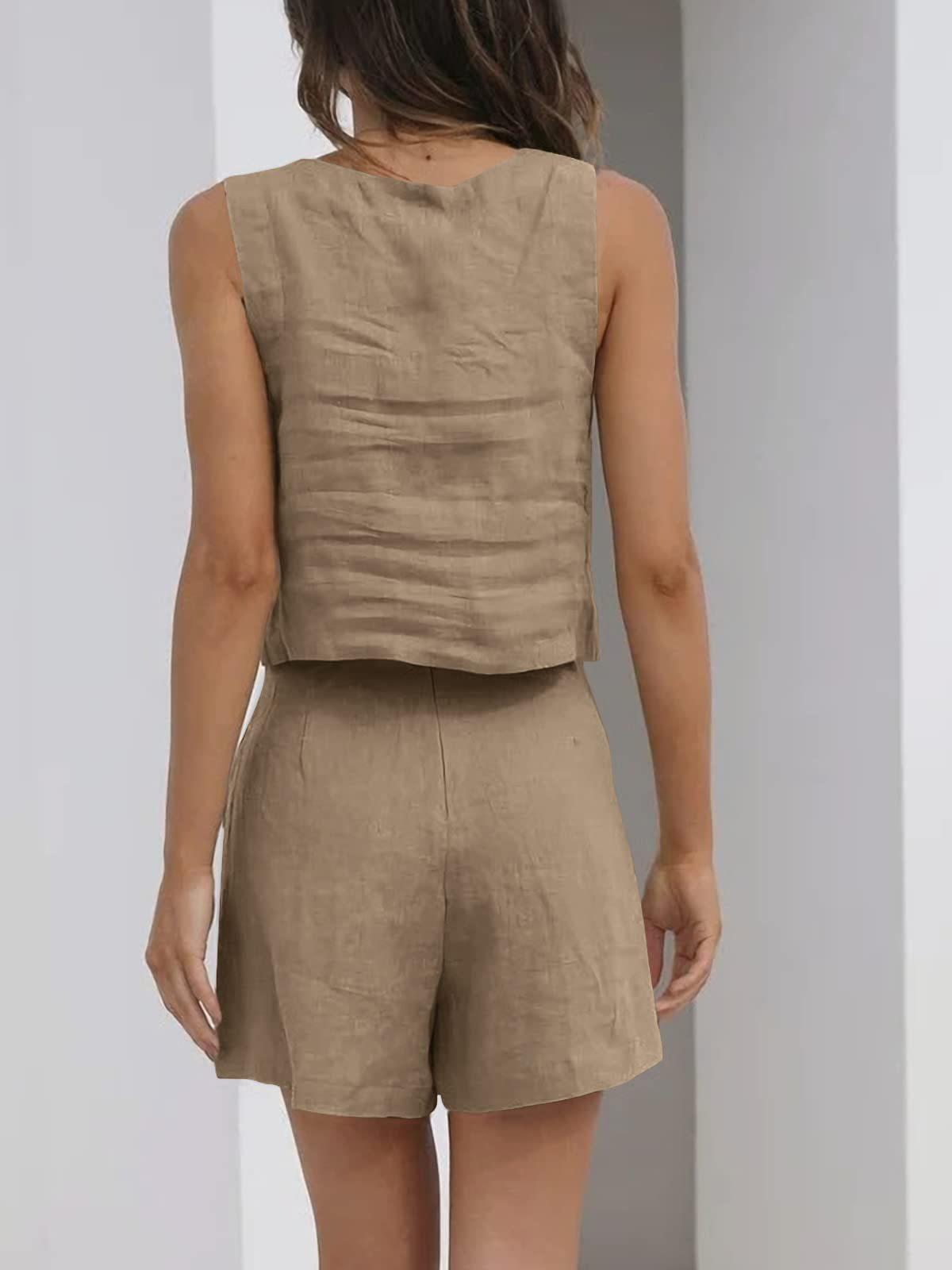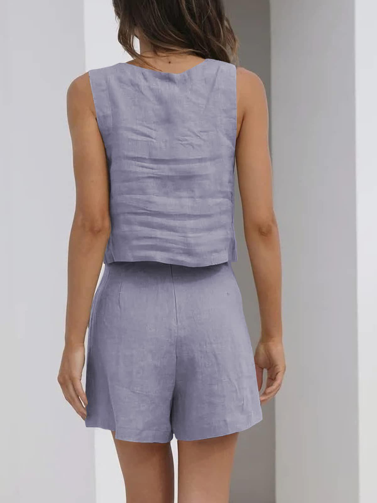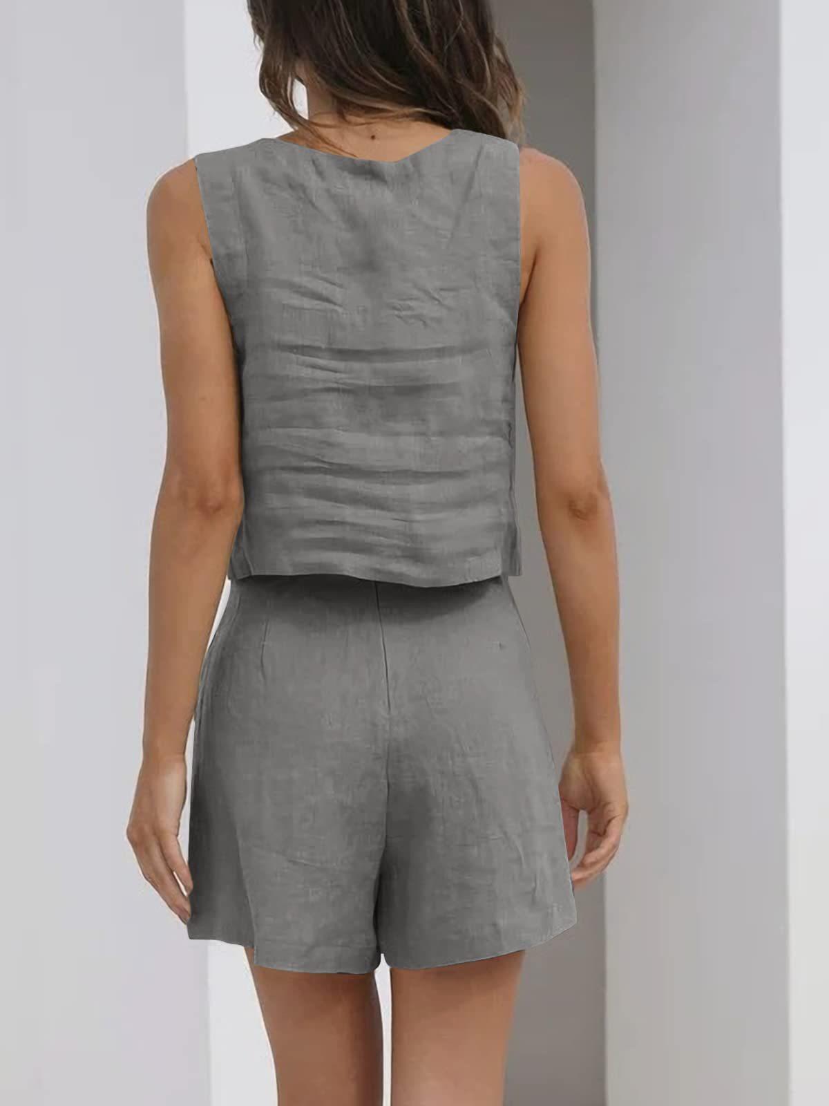 2026 아마존 신상 유럽 및 미국 스타일 2피스 캐주얼 세트 린넨 반바지 민소매 상의 조끼
