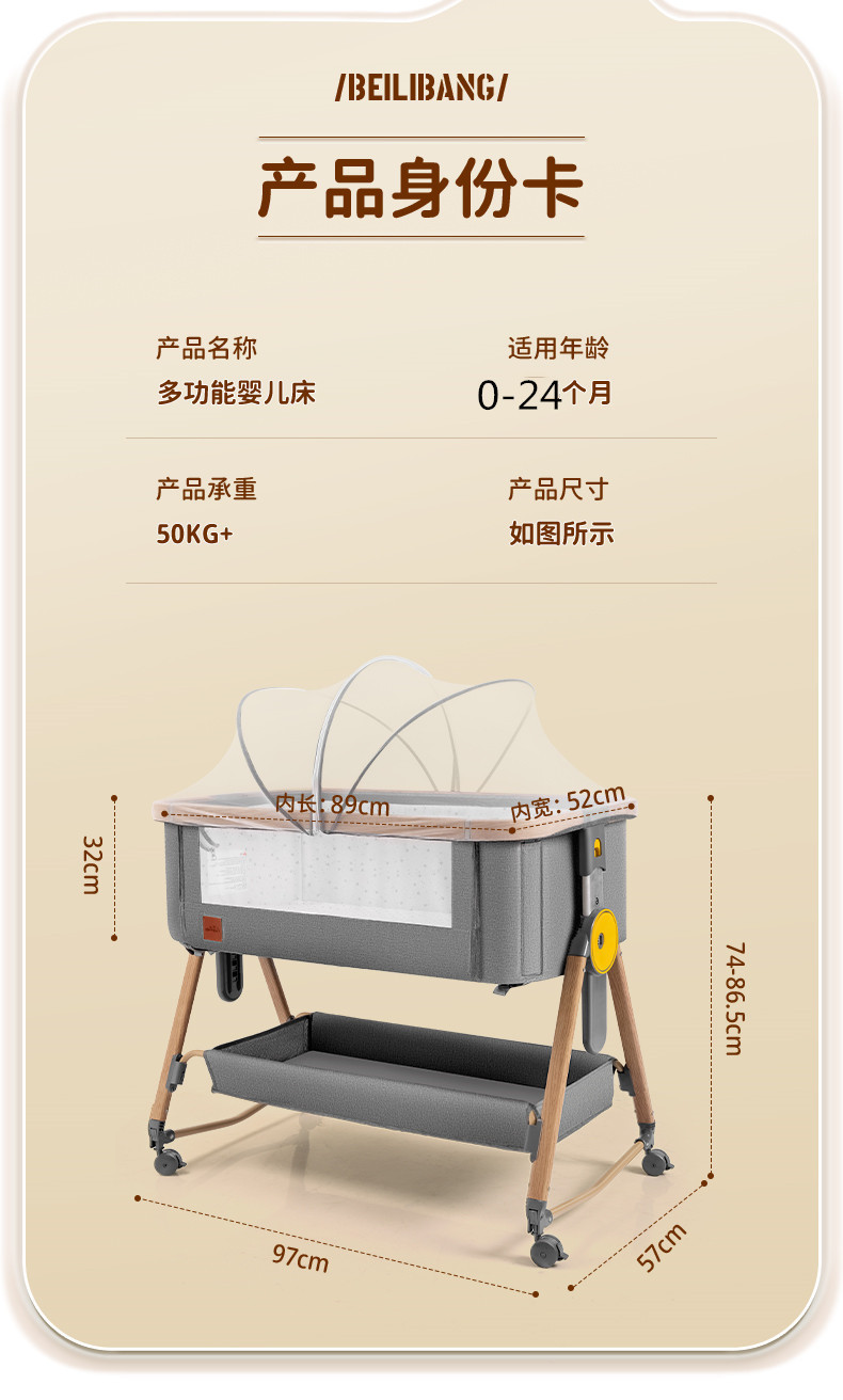 • 카키 (기저귀 테이블 + 침대 + 모기장 + 매트리스 바닥 프레임