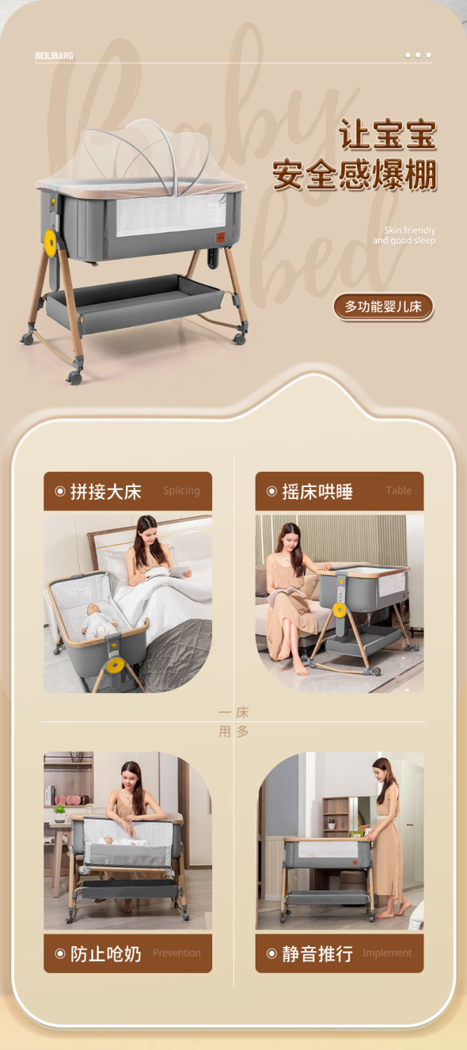 다기능 유아용 침대 이동식 아기 침대 휴대용 접이식 접합 큰 침대 신생아 요람 바이오닉 침대