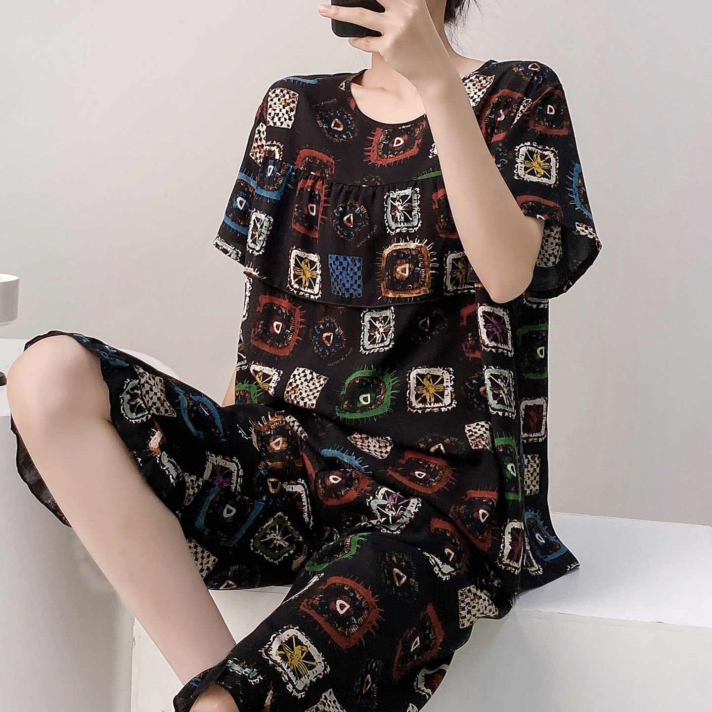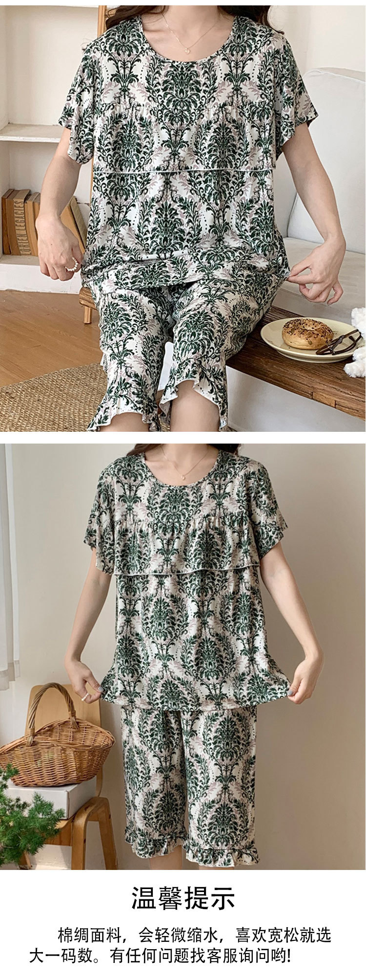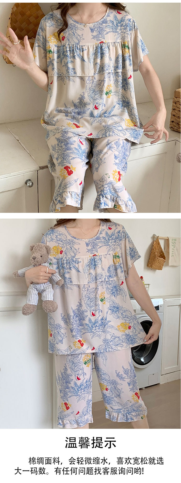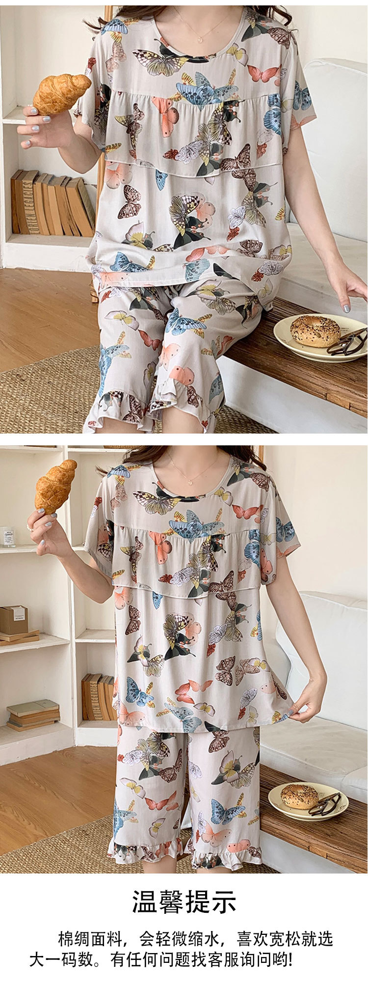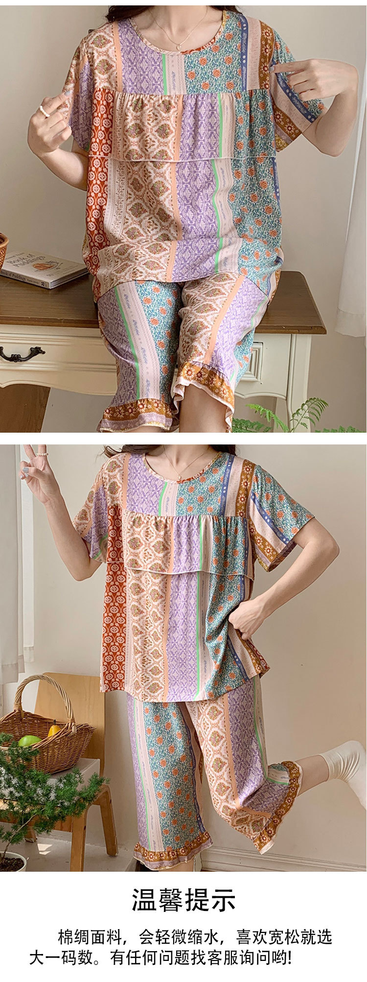 2024 새로운 안티 범프 코튼 실크 파자마 여성 여름 초박형 중소매 바지 면 실크 세트 플러스 사이즈 홈 의류스토어 가기