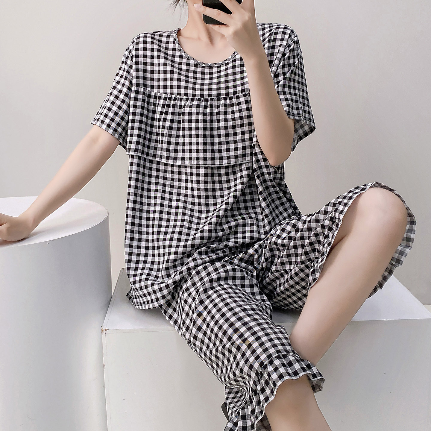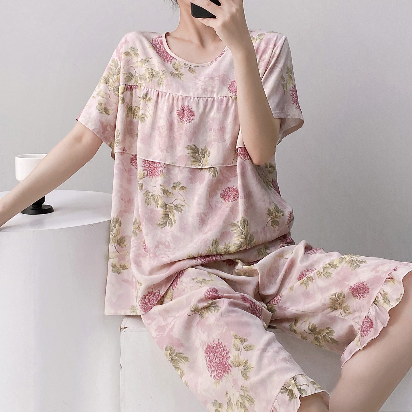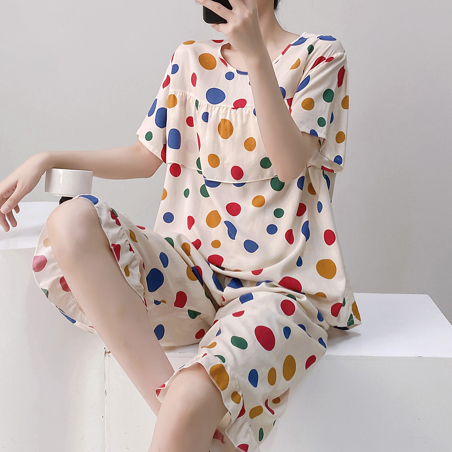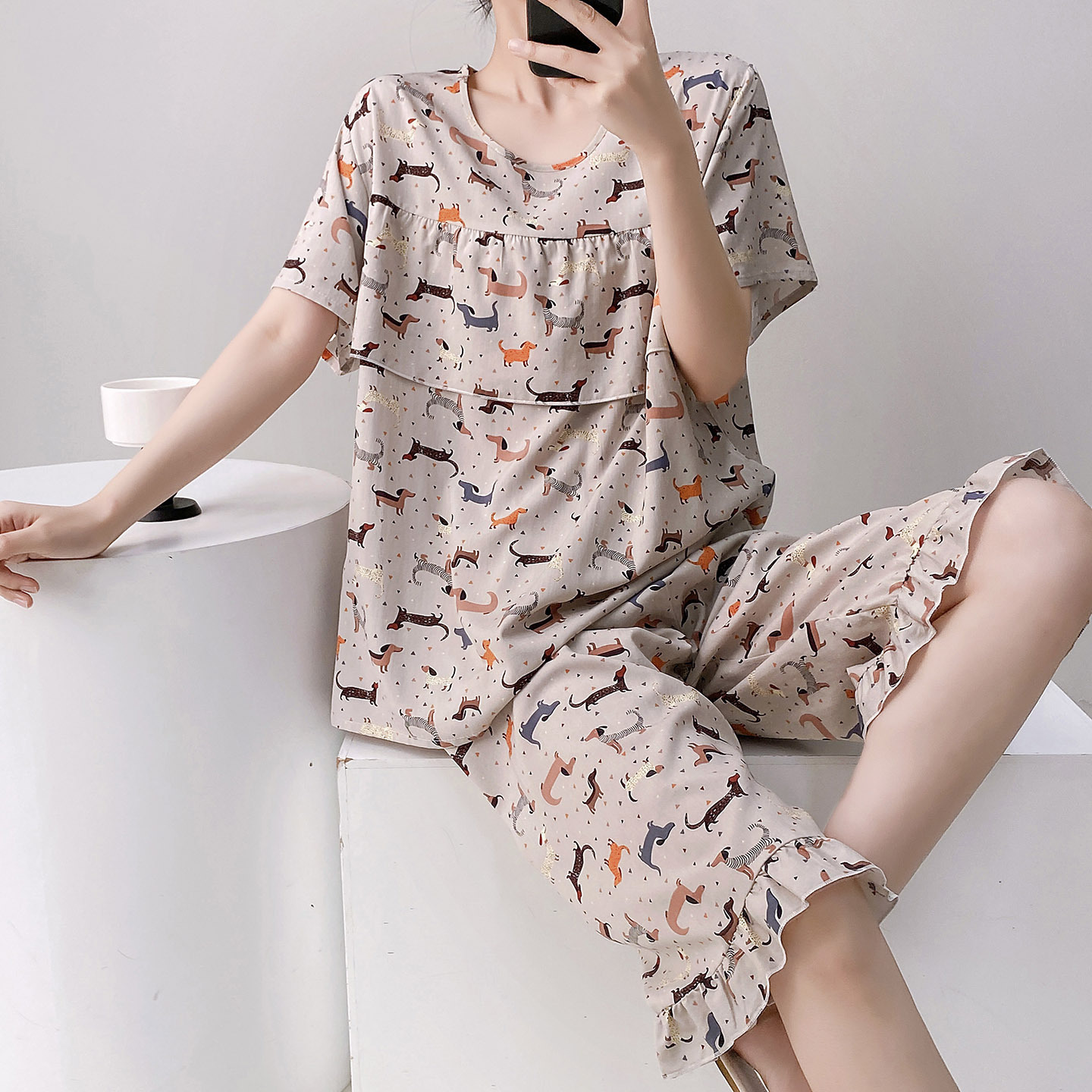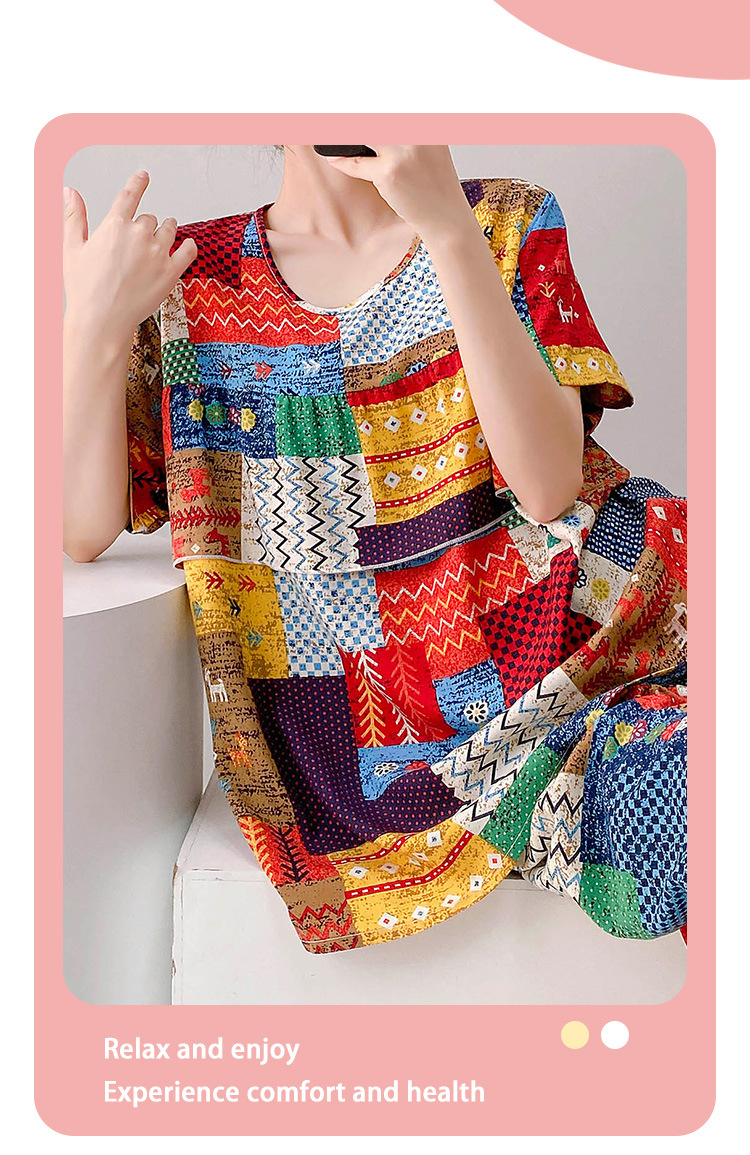 2024 새로운 안티 범프 코튼 실크 파자마 여성 여름 초박형 중소매 바지 면 실크 세트 플러스 사이즈 홈 의류스토어 가기