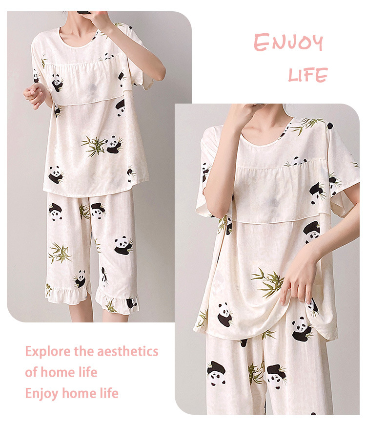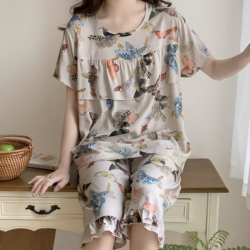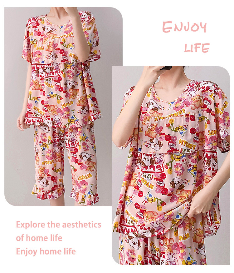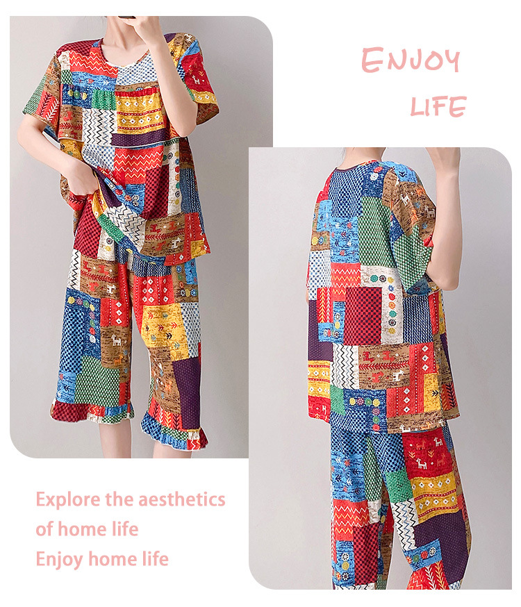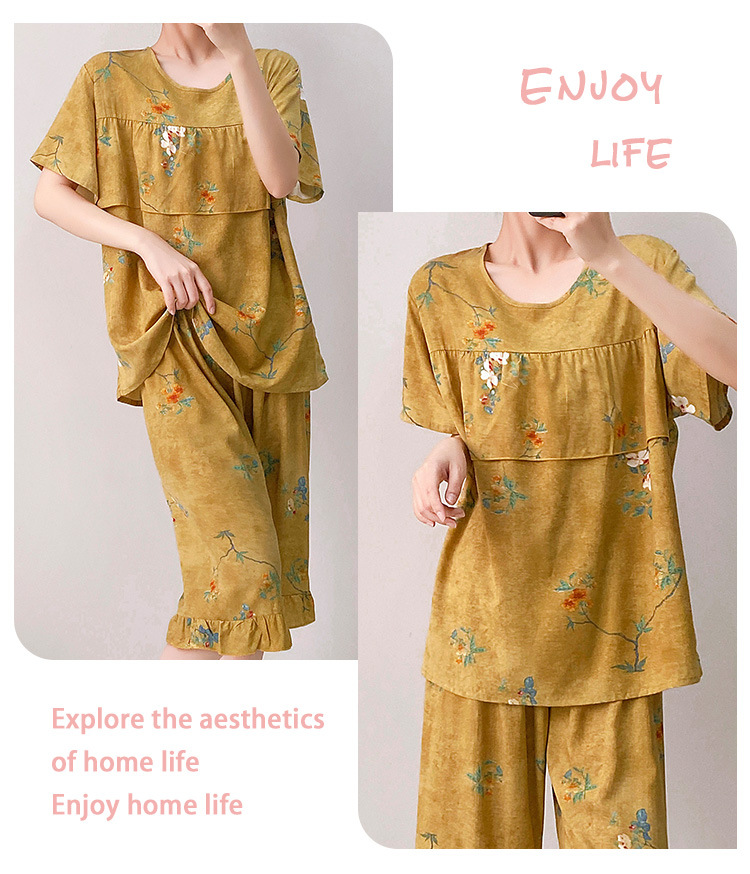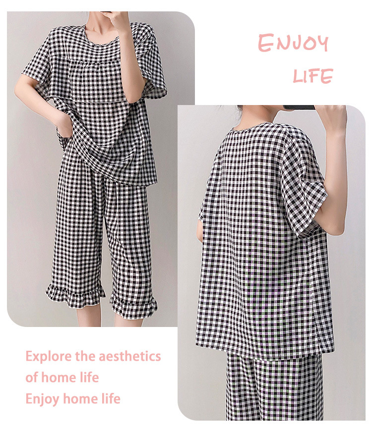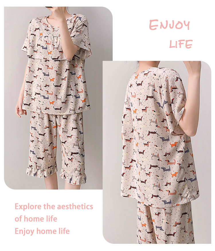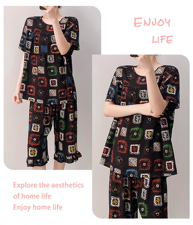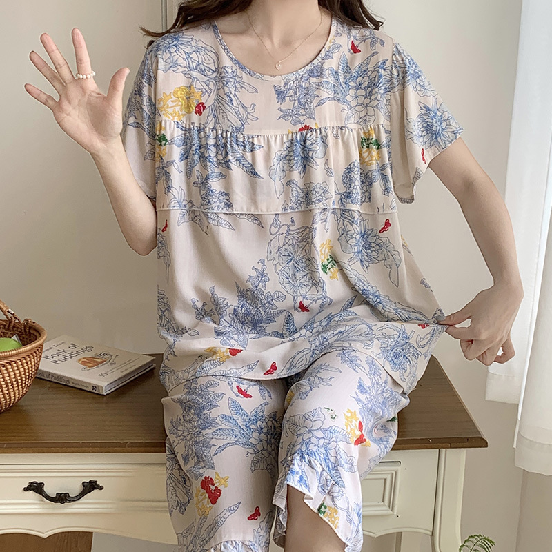 2024 새로운 안티 범프 코튼 실크 파자마 여성 여름 초박형 중소매 바지 면 실크 세트 플러스 사이즈 홈 의류스토어 가기