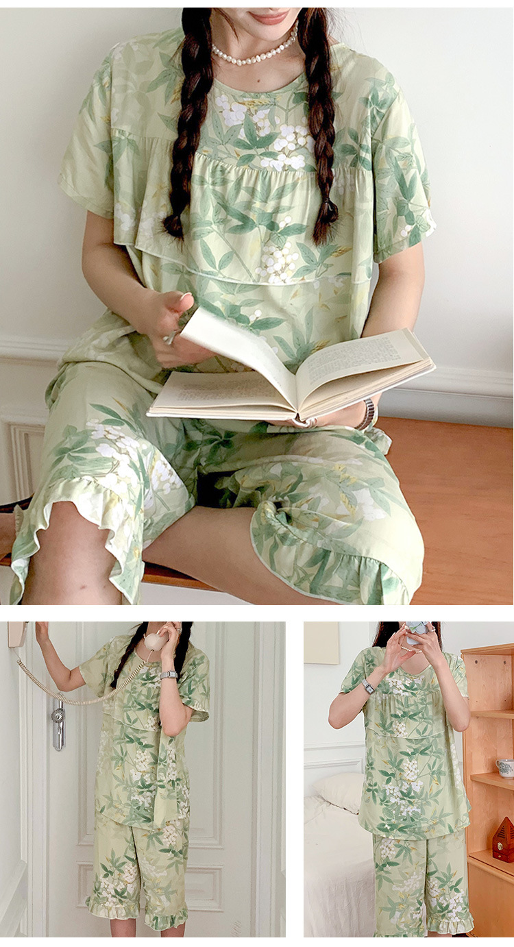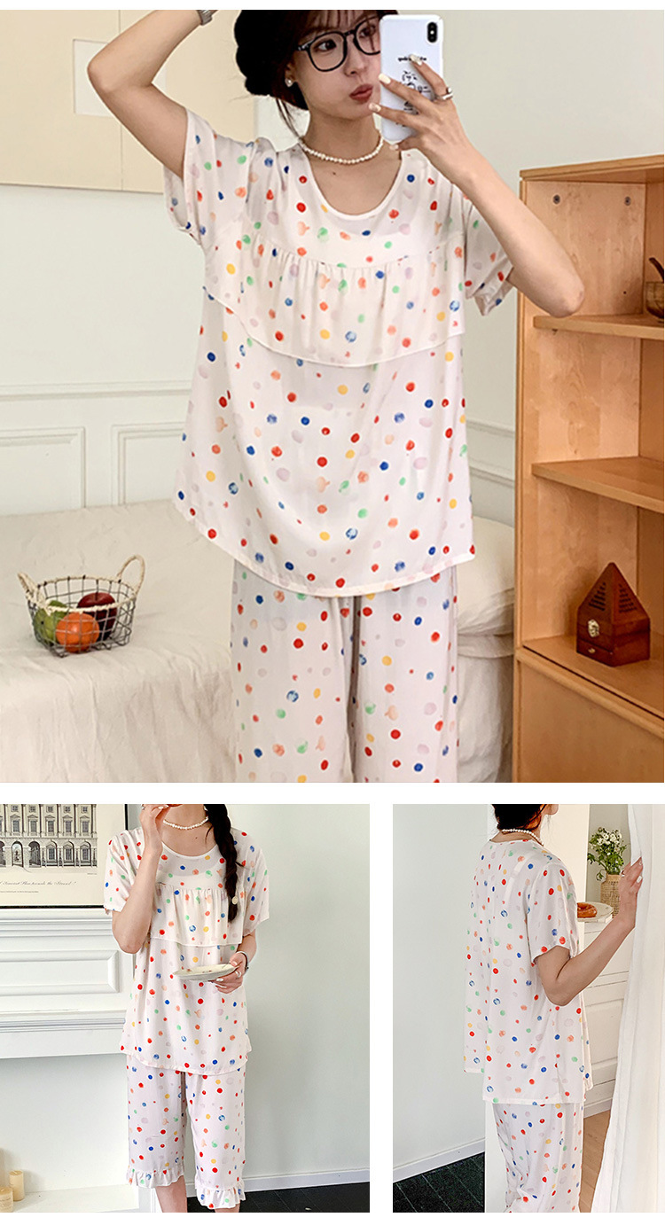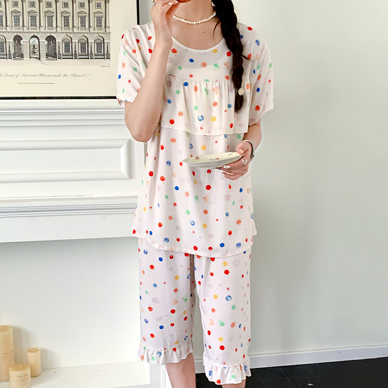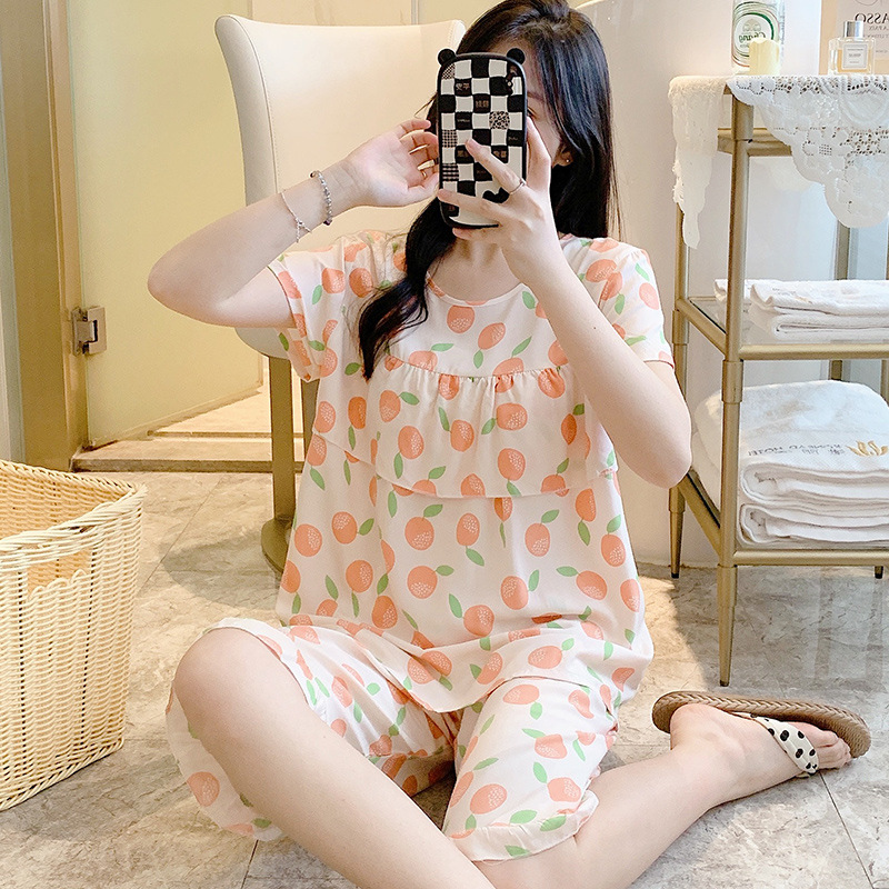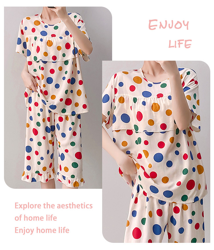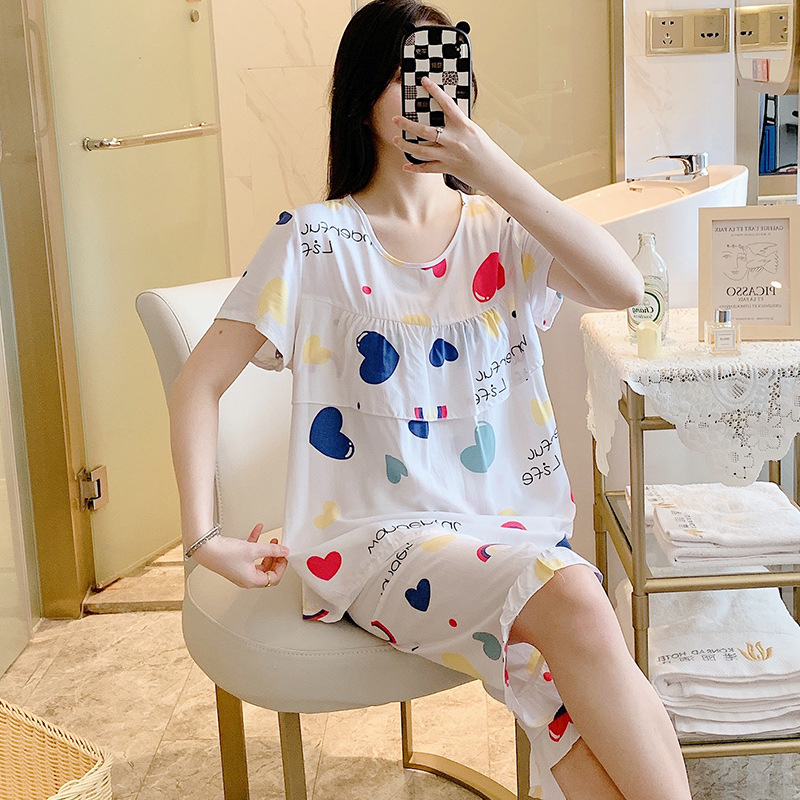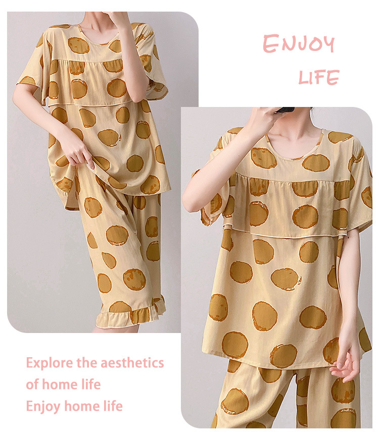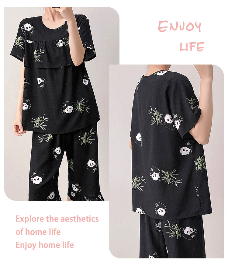 2024 새로운 안티 범프 코튼 실크 파자마 여성 여름 초박형 중소매 바지 면 실크 세트 플러스 사이즈 홈 의류스토어 가기