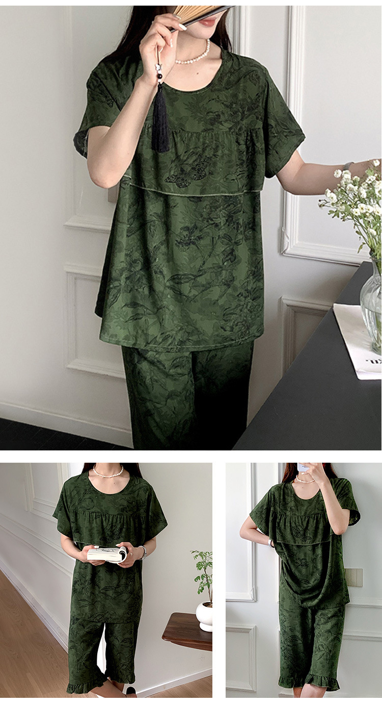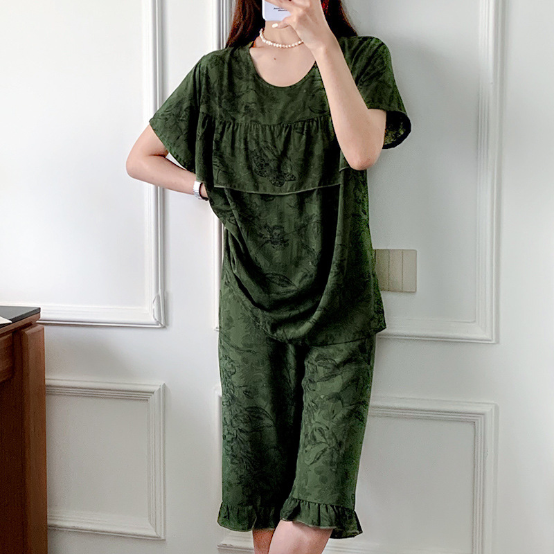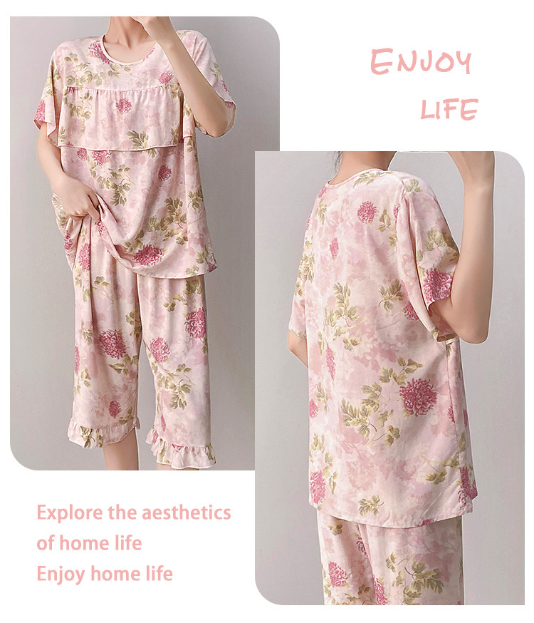2024 새로운 안티 범프 코튼 실크 파자마 여성 여름 초박형 중소매 바지 면 실크 세트 플러스 사이즈 홈 의류