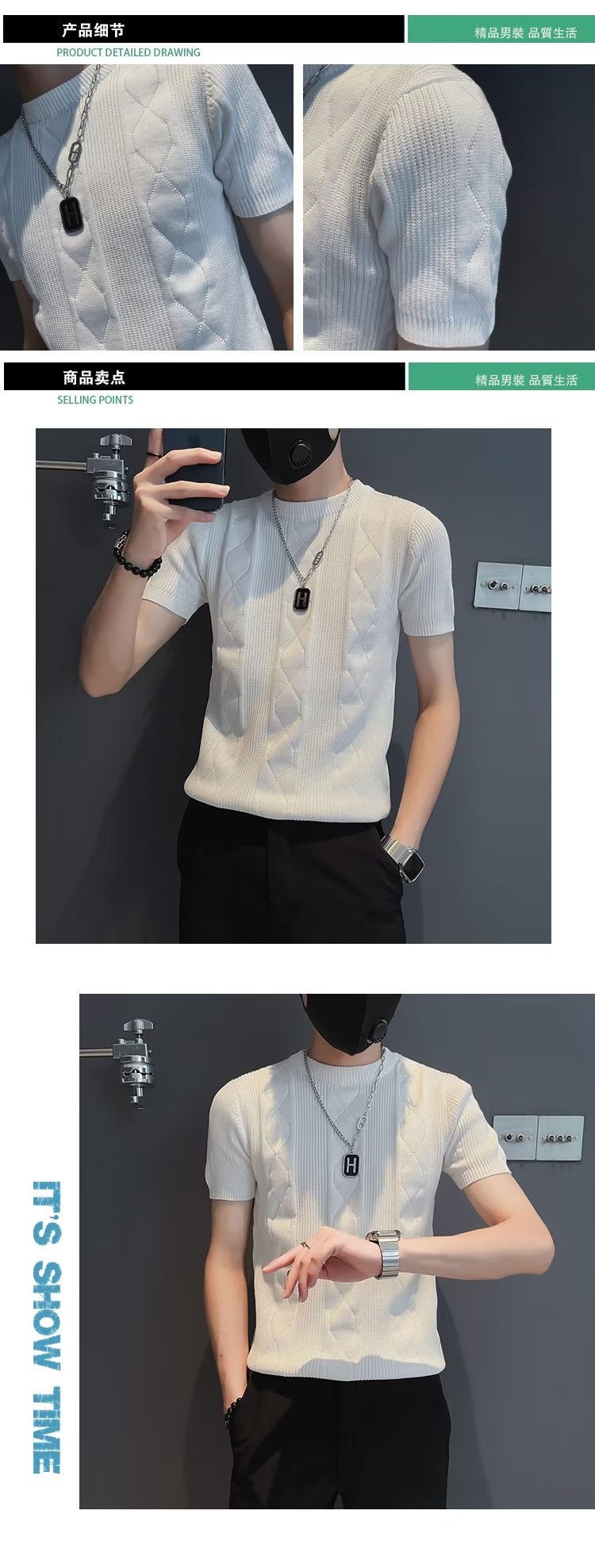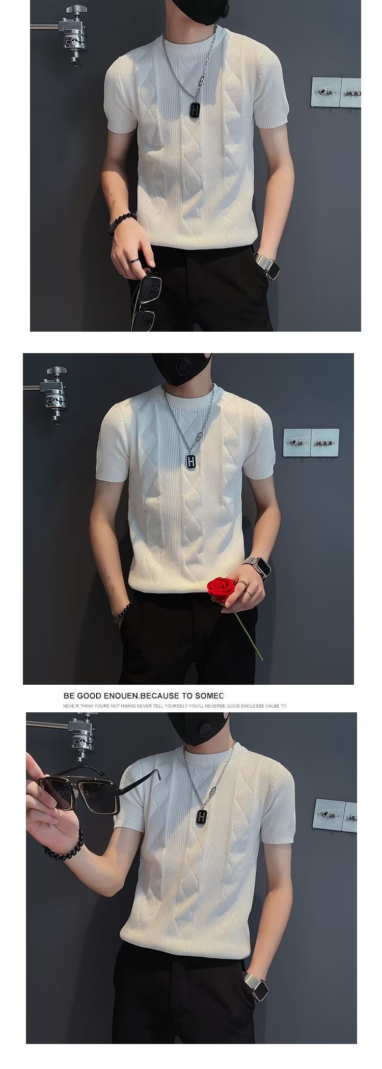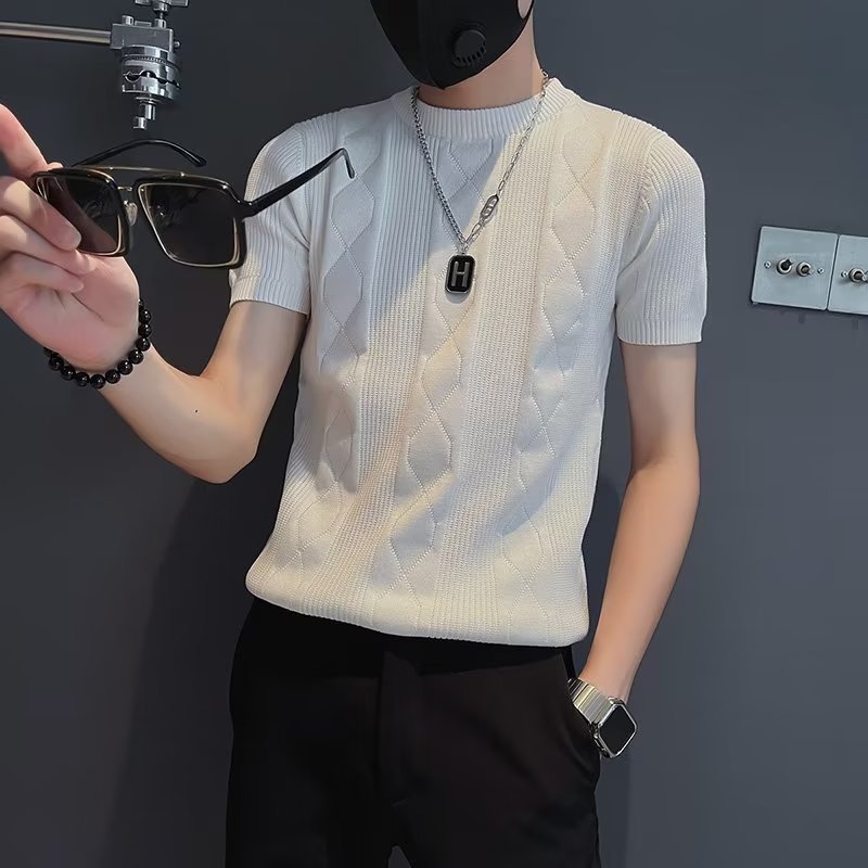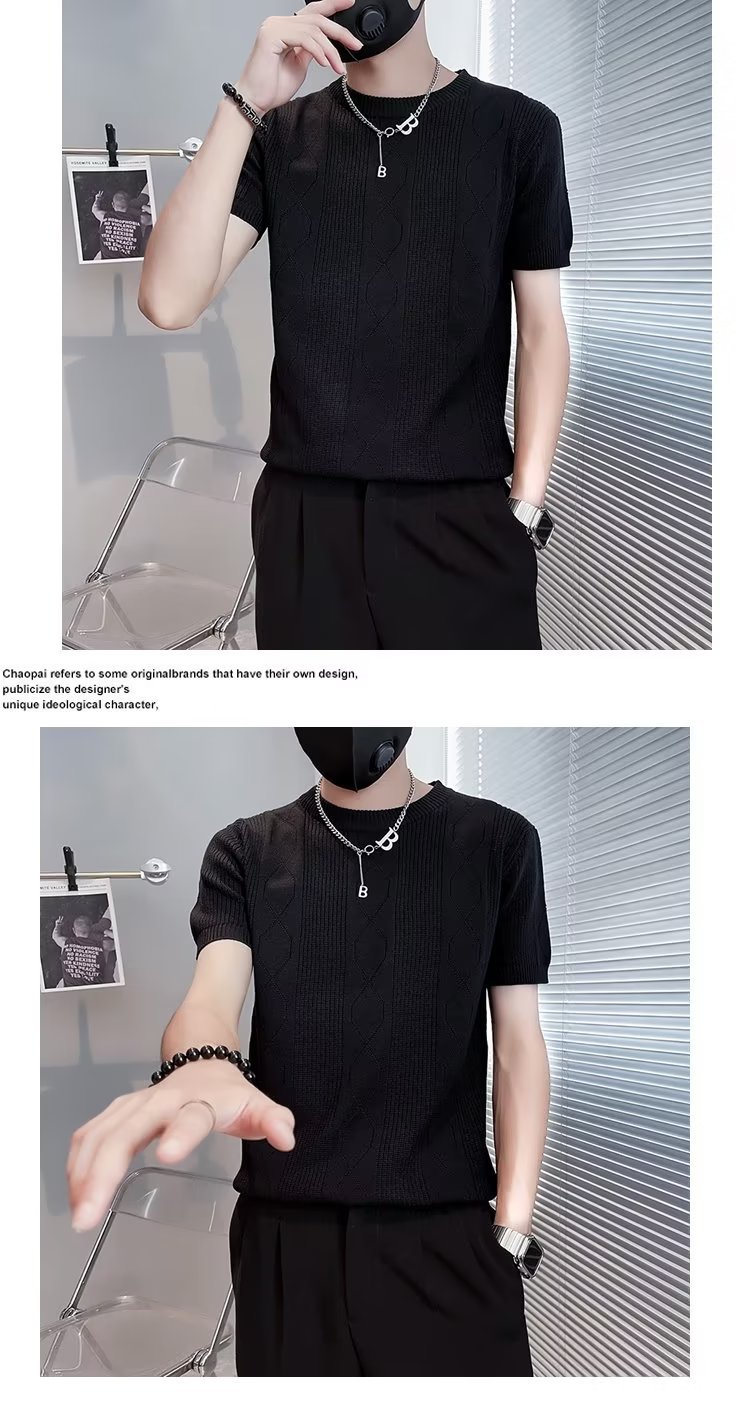 트렌디 브랜드 반팔 남성 티셔츠 봄과 여름 2023 새로운 Duffian 잘 생긴 남성 탑 반팔 스웨터 니트 셔츠스토어 가기