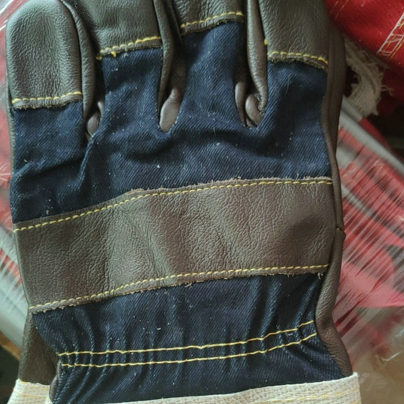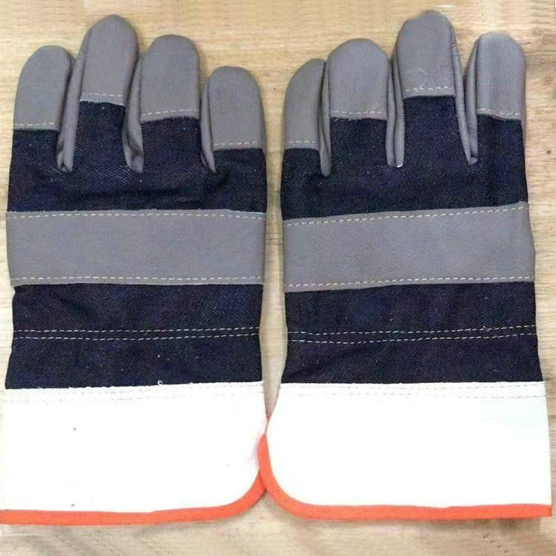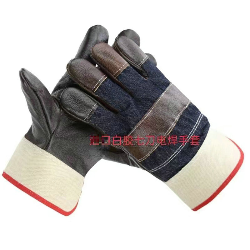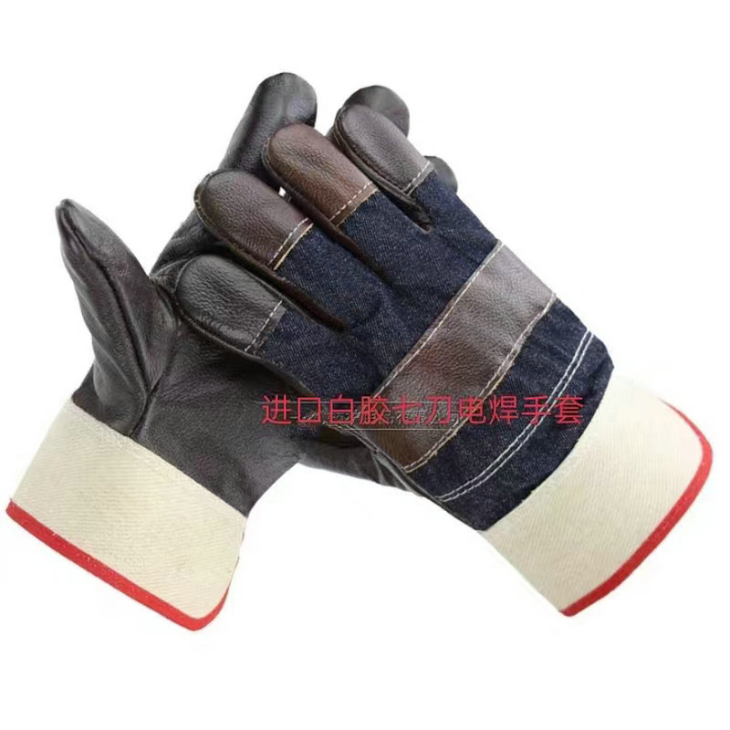 용접 장갑, 용접공 용접 장갑, 흰색 고무 데님 반 가죽 장갑, 건설 현장 장갑, 도매 두꺼운 노동 보호 장갑
