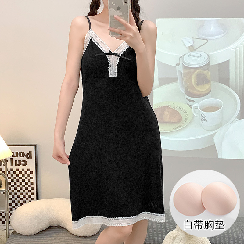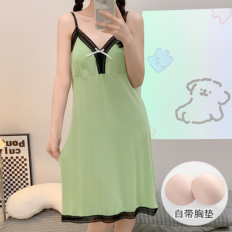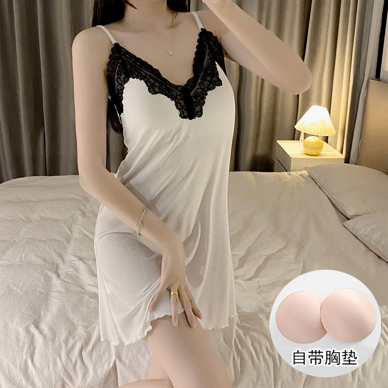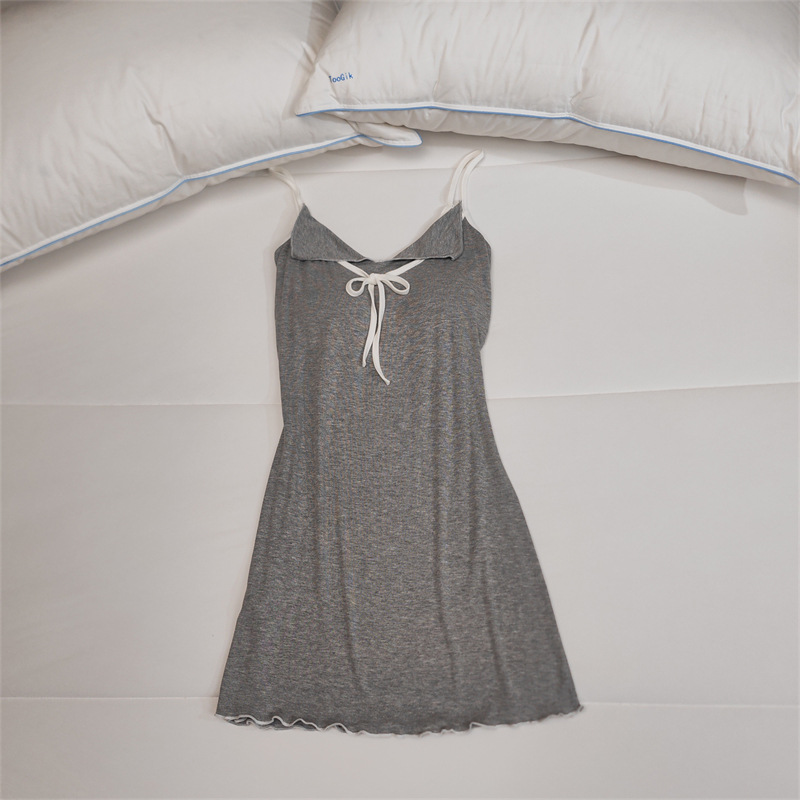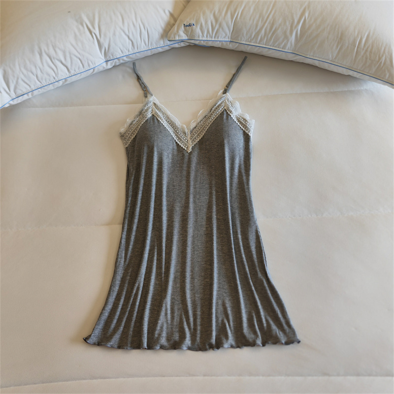 가슴 패드가있는 잠옷 여성 여름 섹시한 민소매 조끼 잠옷 스커트 얇은 여름 회색 여름 드레스스토어 가기