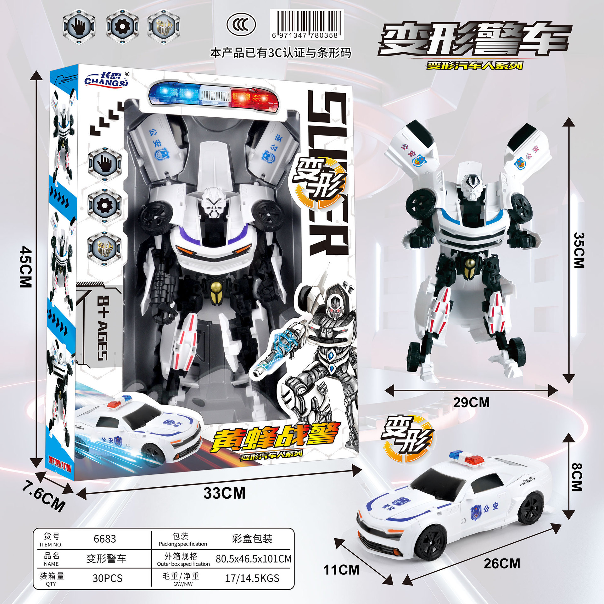 Douyin 대형 어린이 변형 장난감 로봇 소년 호박비 Ares 경찰차 모델 도매
