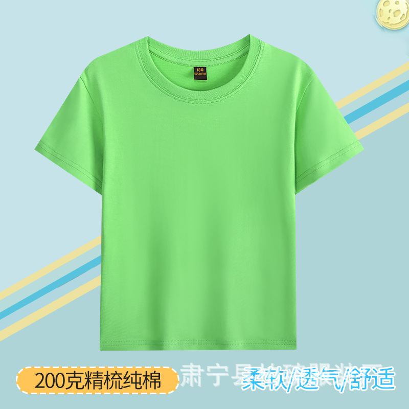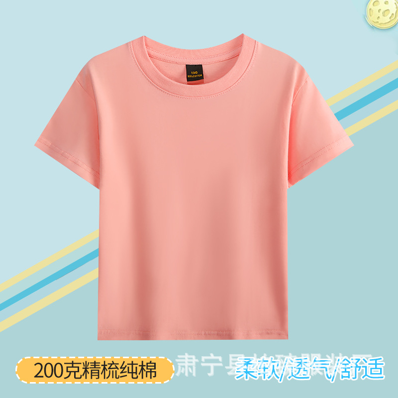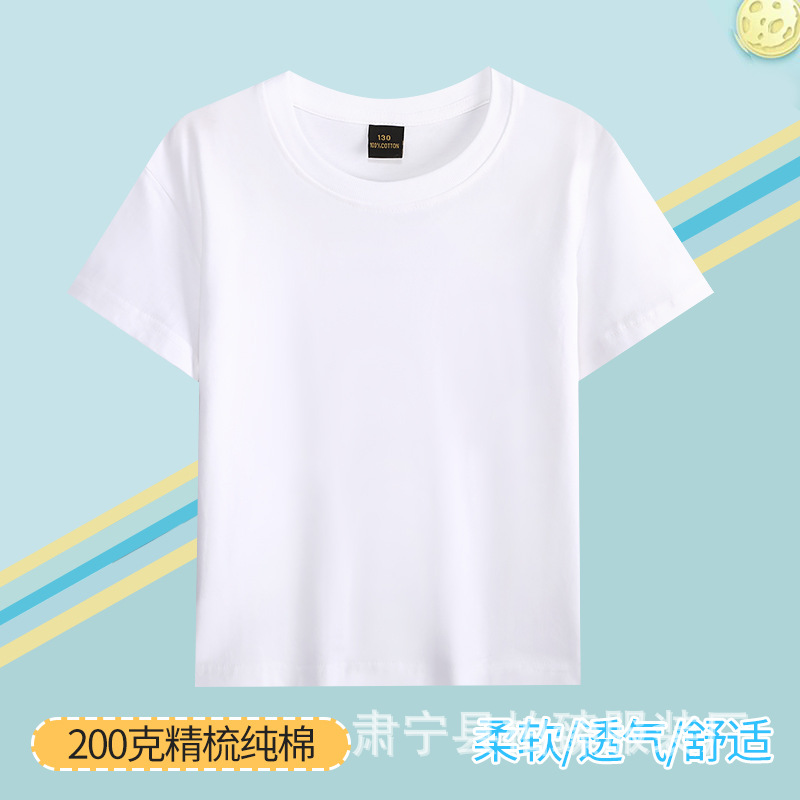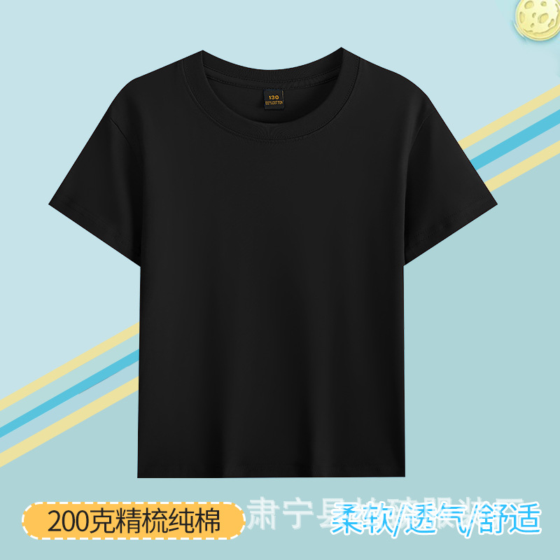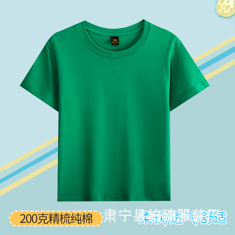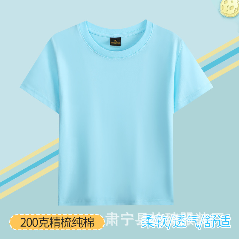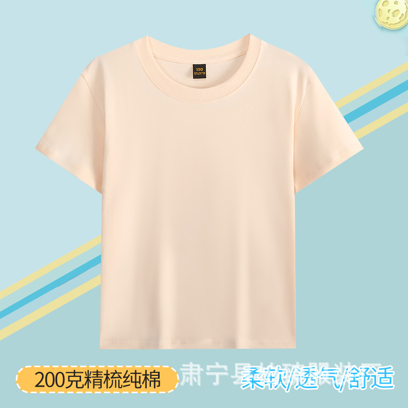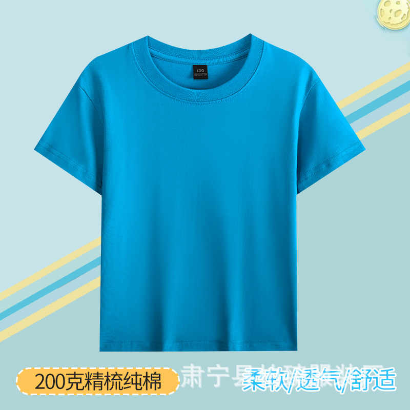 순면 200g 어린이 순면 티셔츠 소년 소녀 로고 프린트 티셔츠를위한 느슨한 단색 크루넥 티셔츠스토어 가기