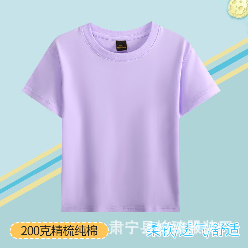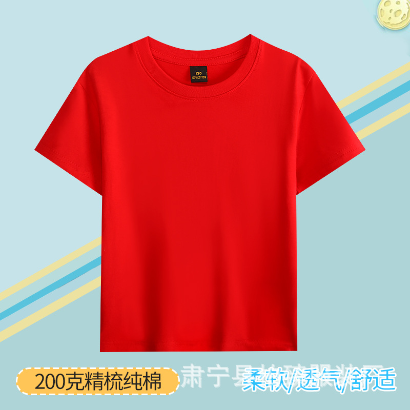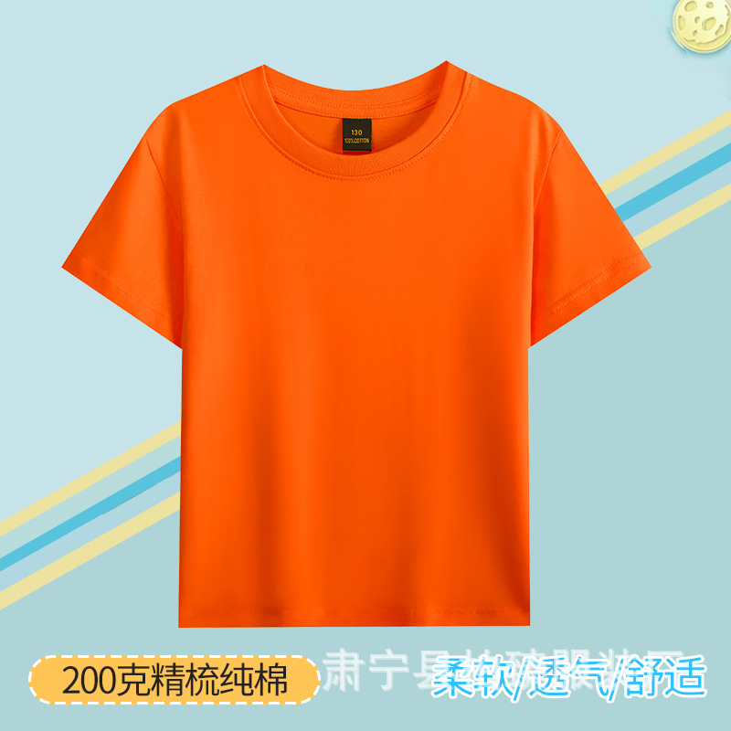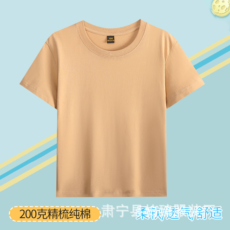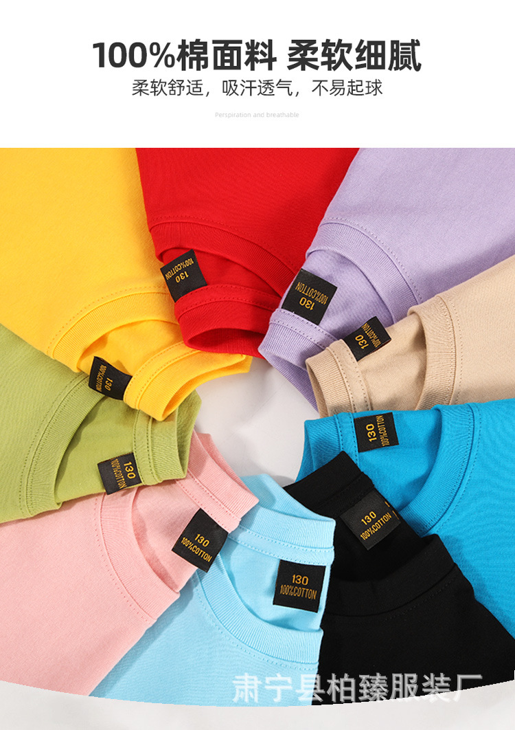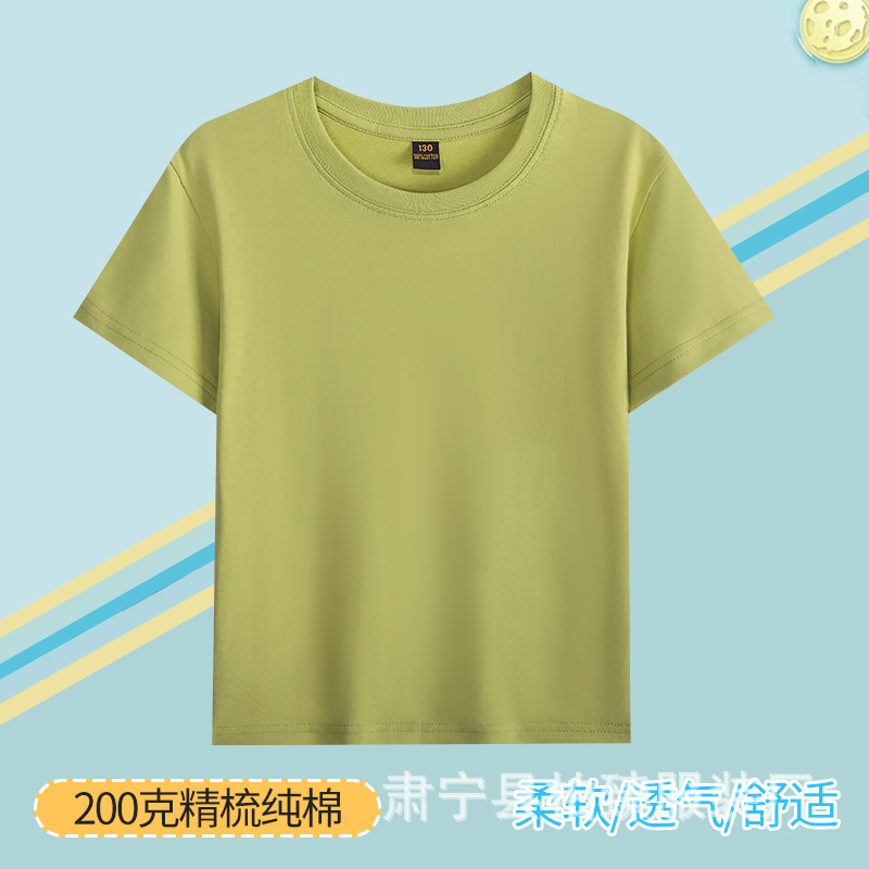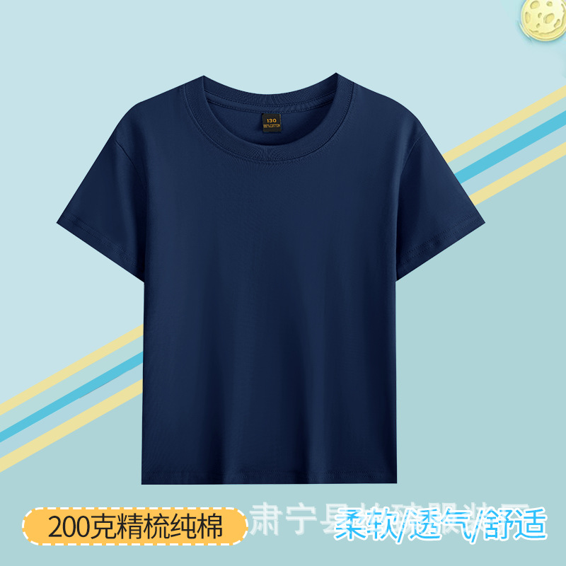 순면 200g 어린이 순면 티셔츠 소년 소녀 로고 프린트 티셔츠를위한 느슨한 단색 크루넥 티셔츠스토어 가기