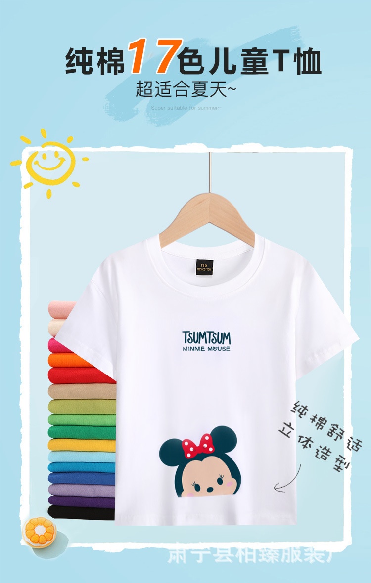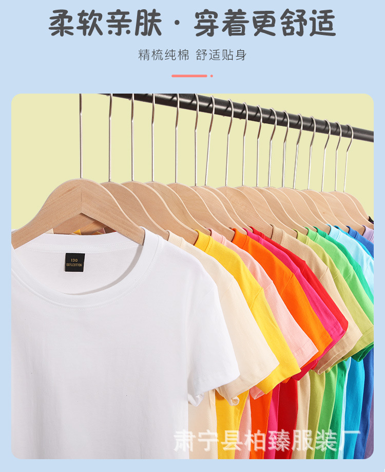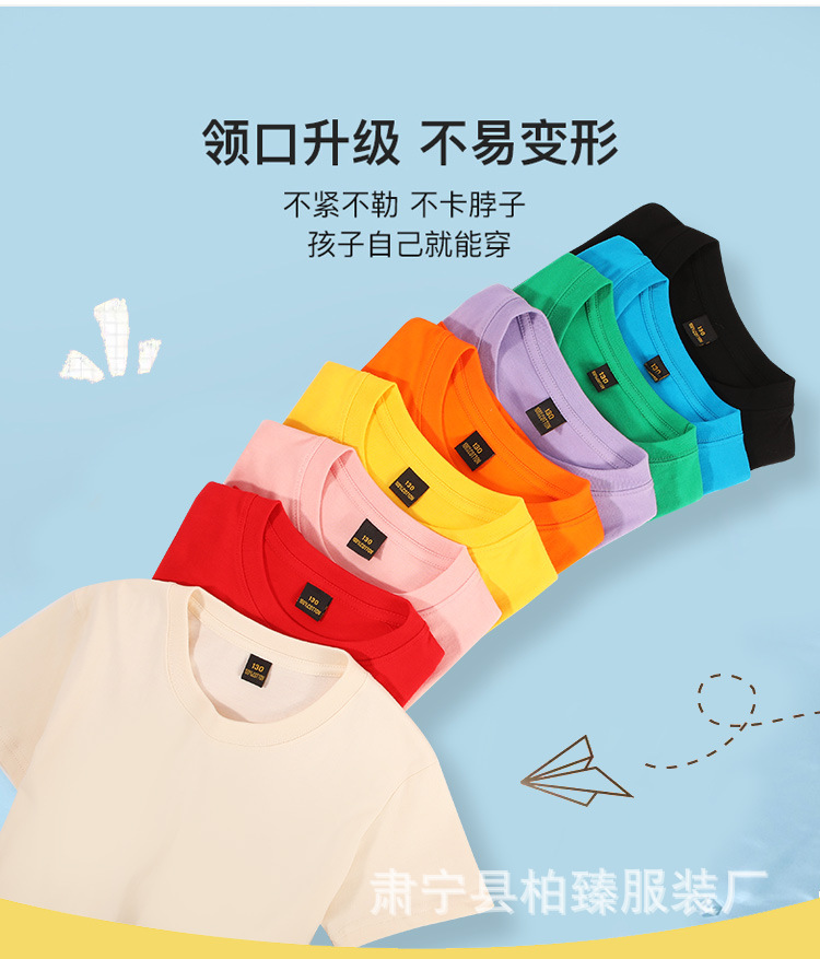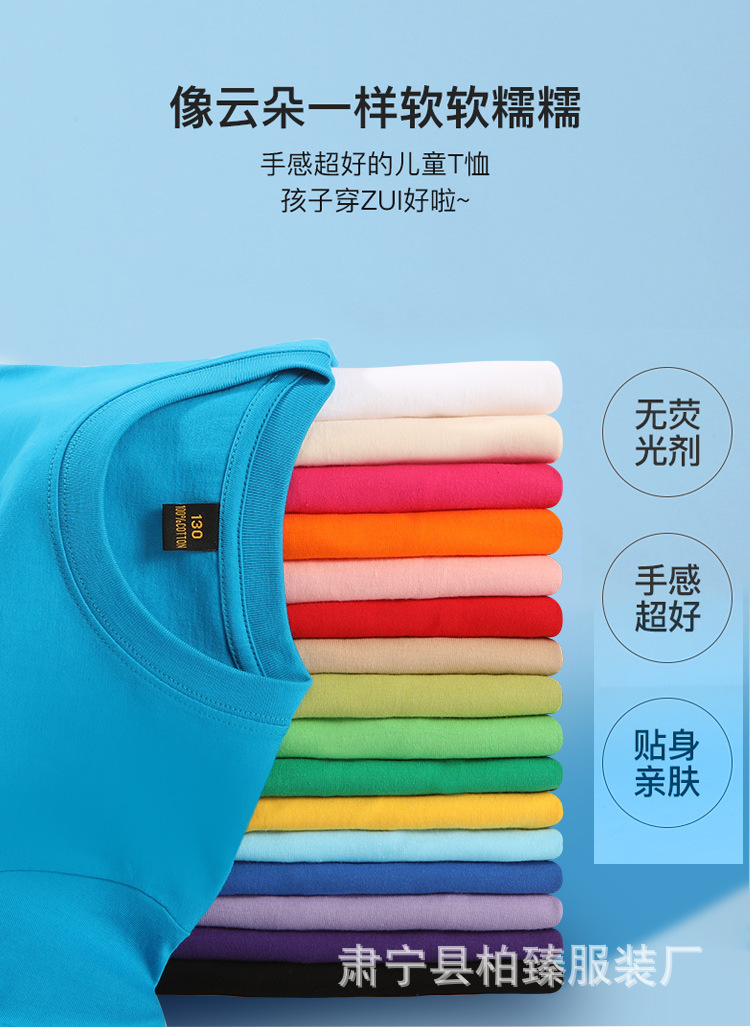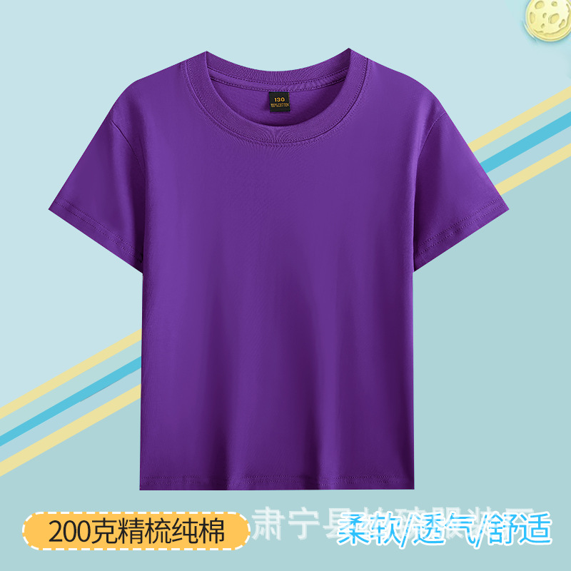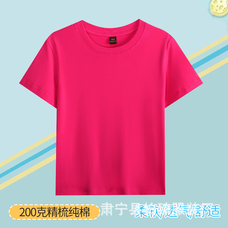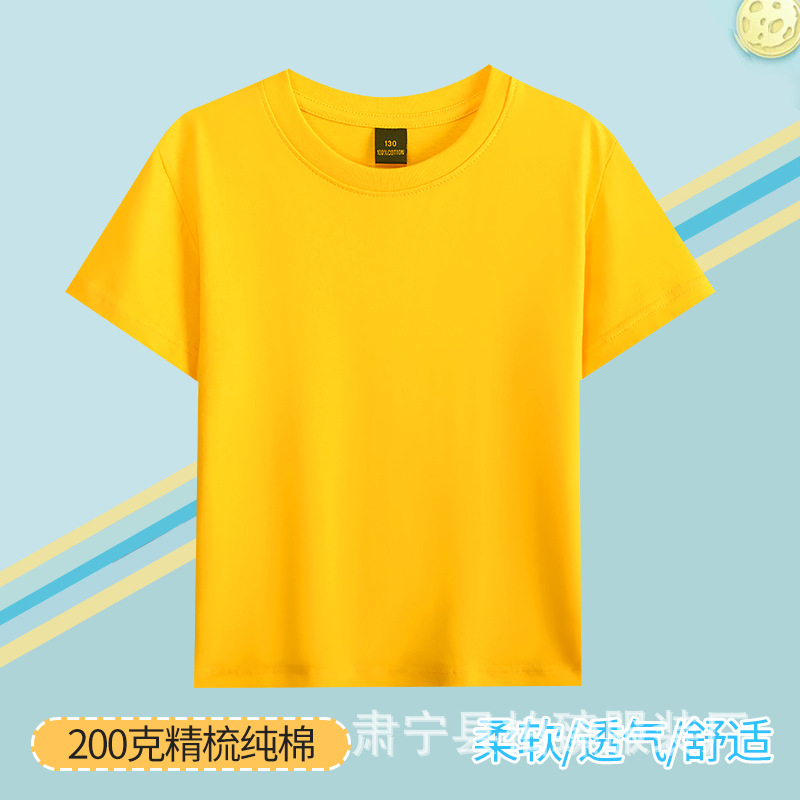 순면 200g 어린이 순면 티셔츠 소년 소녀 로고 프린트 티셔츠를위한 느슨한 단색 크루넥 티셔츠스토어 가기