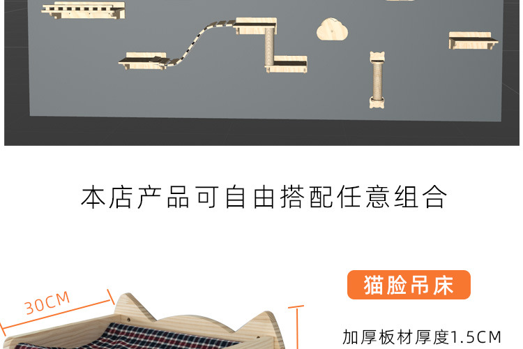 단단한 나무 벽 고양이 등산 랙 고양이 해먹 고양이 장난감 고양이 벽걸이 대형 고양이 등산 랙 고양이 카페 애완 동물 가게