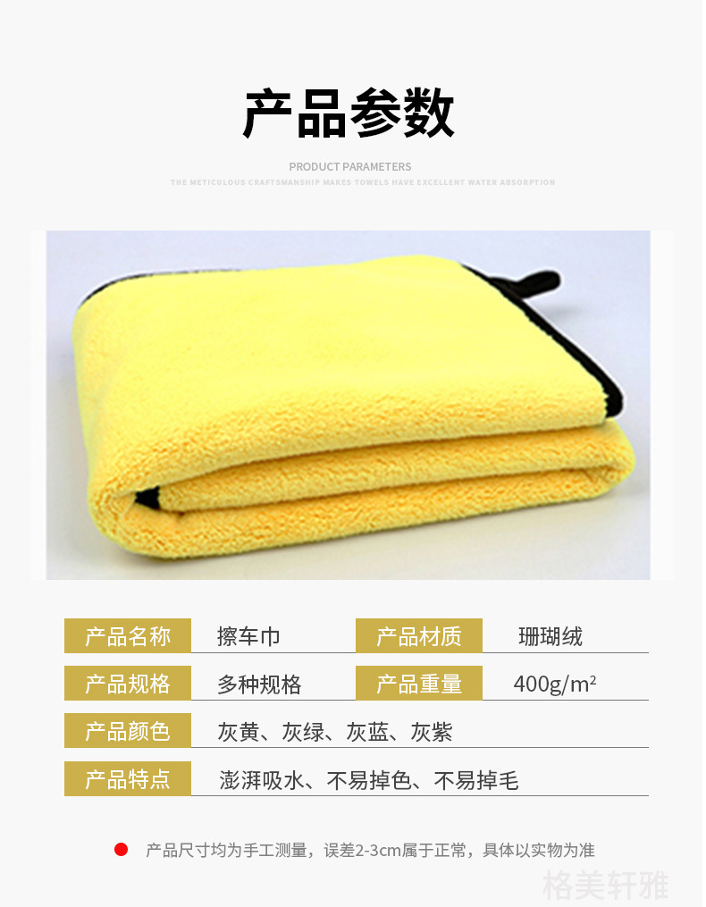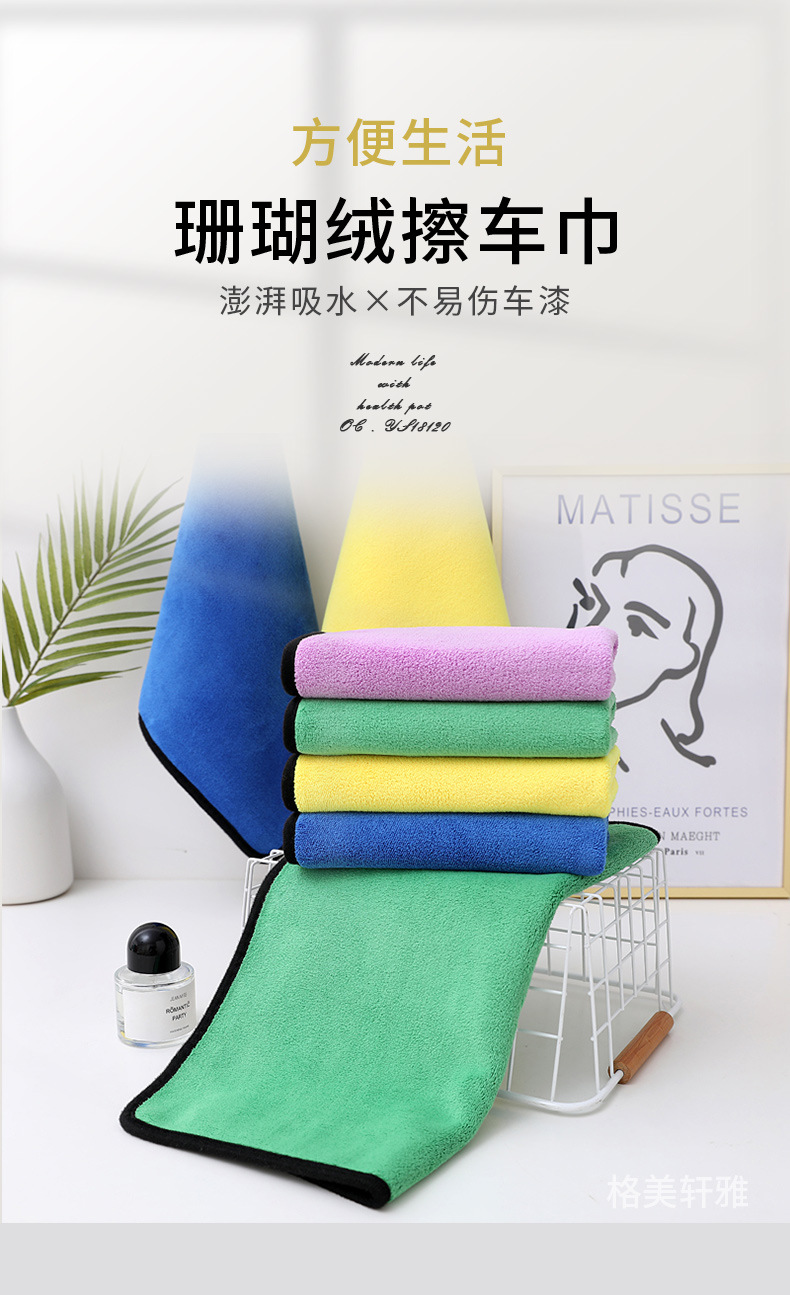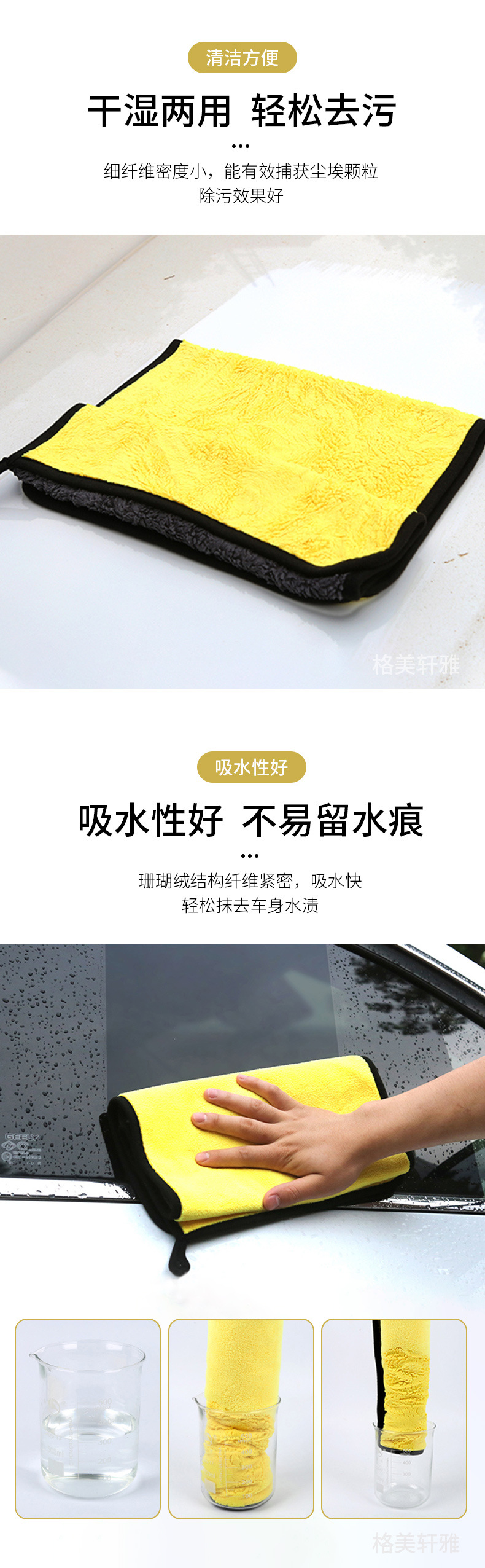 양면 산호 양털 자동차 타월 다기능 세차 타월 두꺼운 흡수성 극세사 타월 청소 천스토어 가기