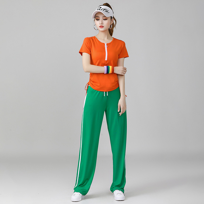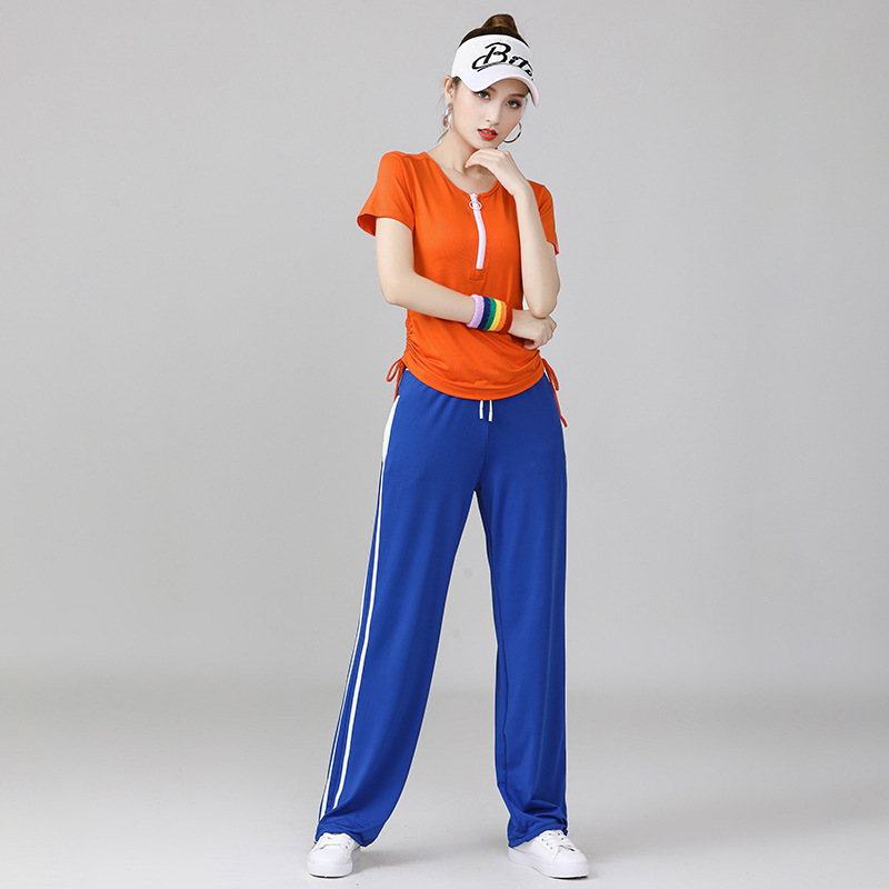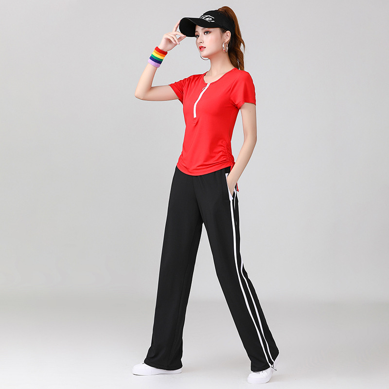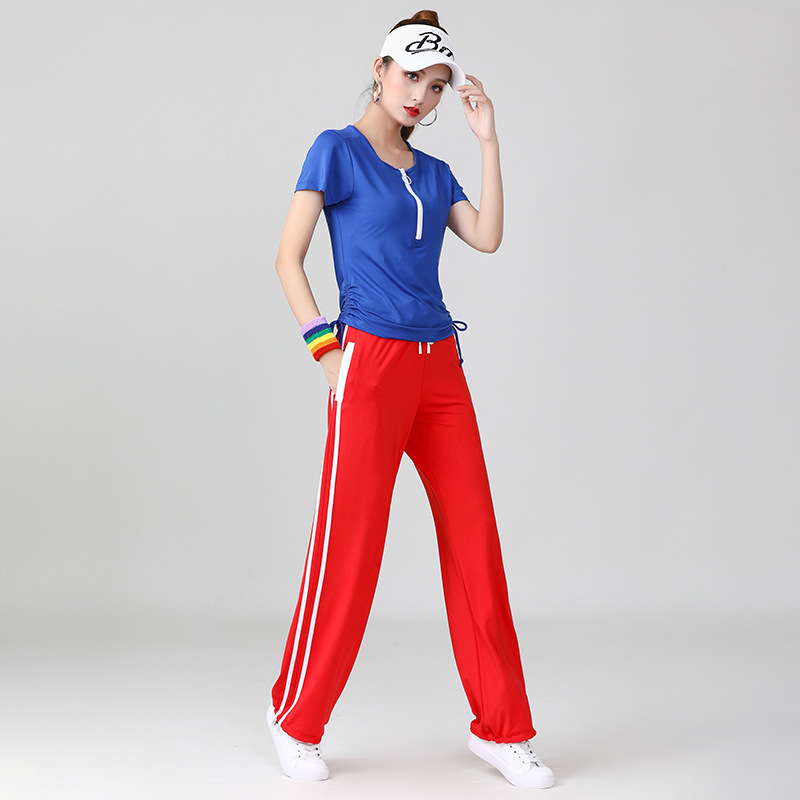Yang Liping 스퀘어 댄스 의상 새로운 세트 여름 반팔 셔플 스포츠웨어 여성 유령 댄스 옷스토어 가기