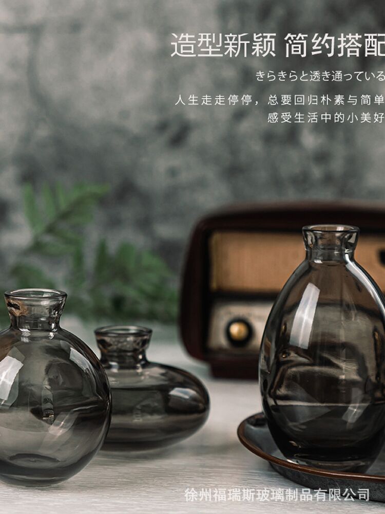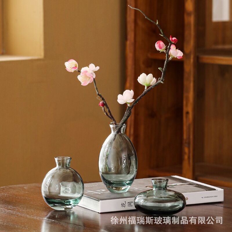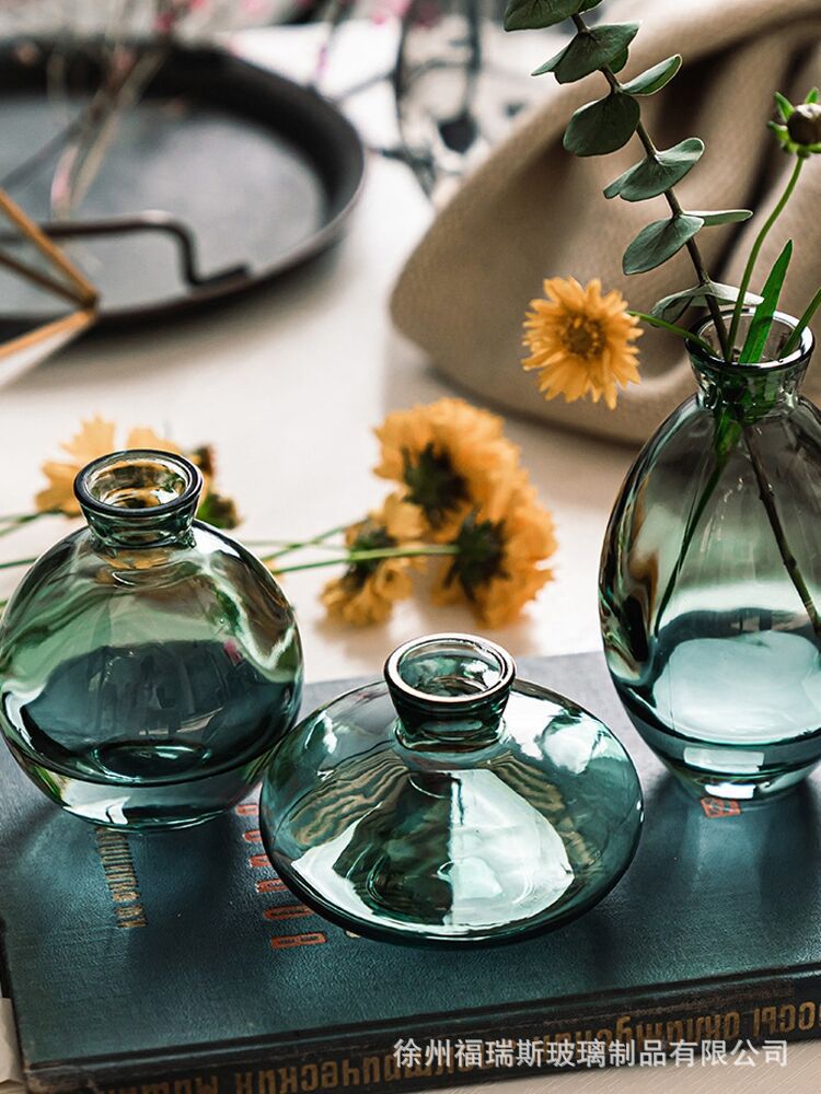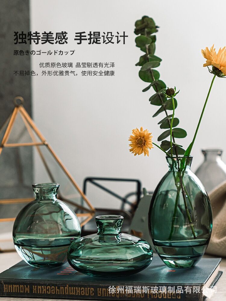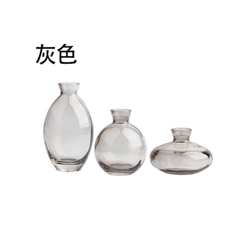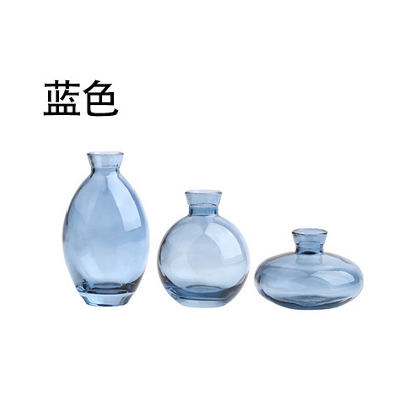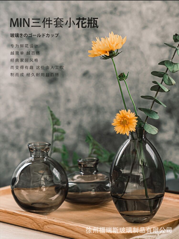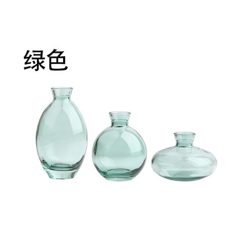 간단한 작은 꽃병 유리 색상 신선한 창조적 인 장식 장식품 수제 꽃다발 꽃 3 피스 장식품 도매
