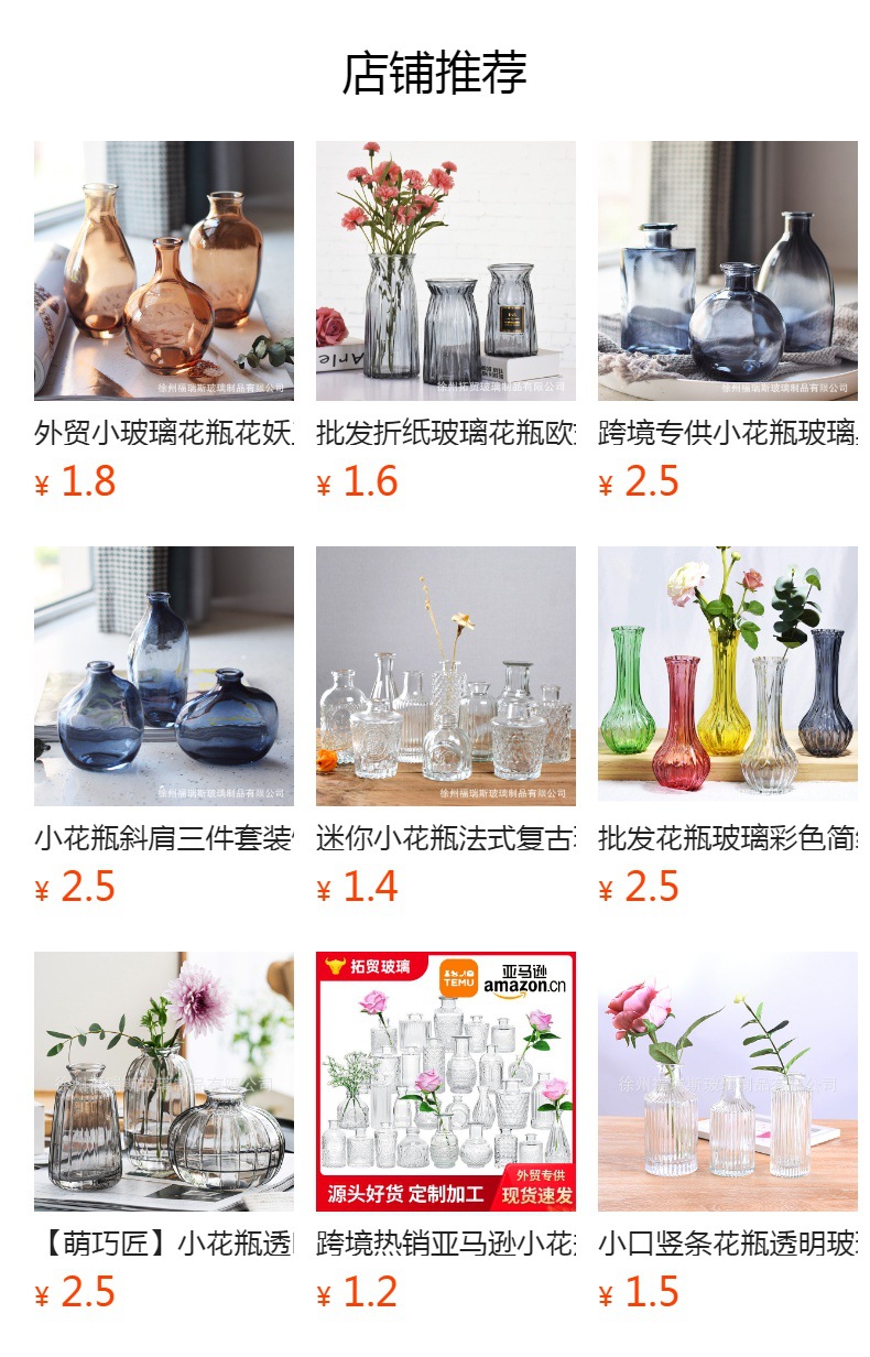 간단한 작은 꽃병 유리 색상 신선한 창조적 인 장식 장식품 수제 꽃다발 꽃 3 피스 장식품 도매스토어 가기
