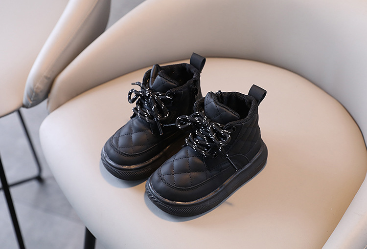 어린이 부츠 2025 가을 겨울 신상 남아 체크무늬 사이드 지퍼 아기 부츠 여아 면부츠 따뜻한 신발