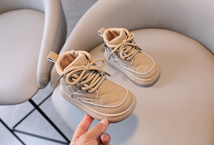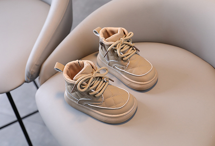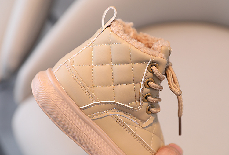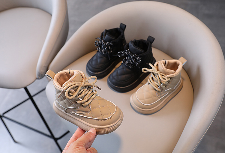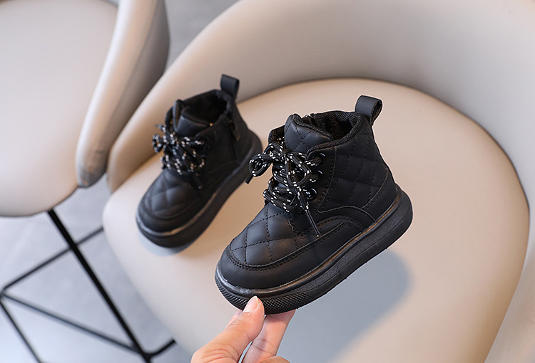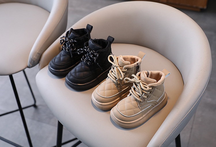 어린이 부츠 2025 가을 겨울 신상 남아 체크무늬 사이드 지퍼 아기 부츠 여아 면부츠 따뜻한 신발스토어 가기