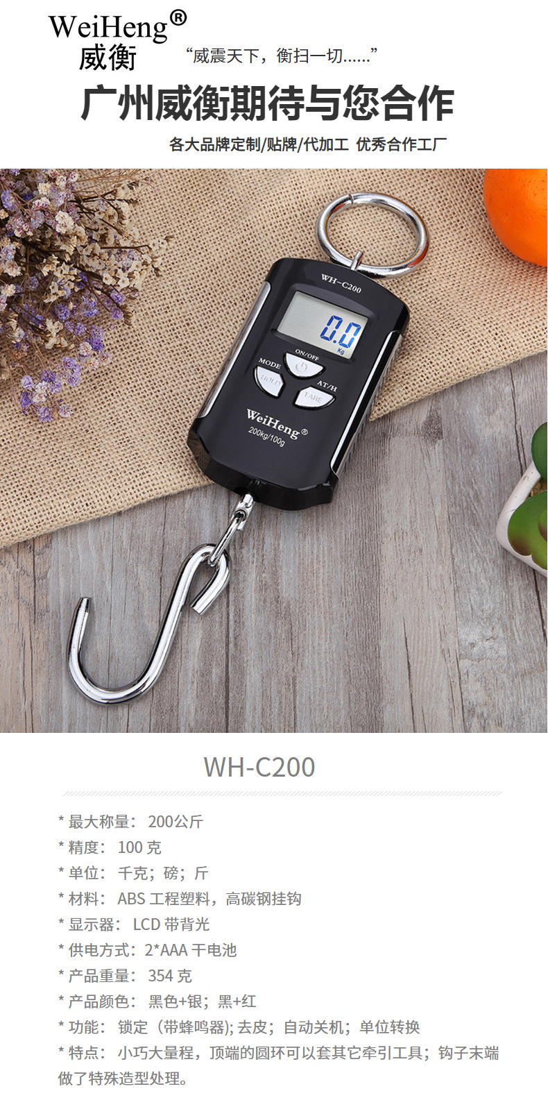 WeeHeng WeeHeng WH-C200 공장 직접 200kg 전자 교수형 저울은 400kg 돼지, 소 및 양 규모의 무게를 달 수 있습니다스토어 가기