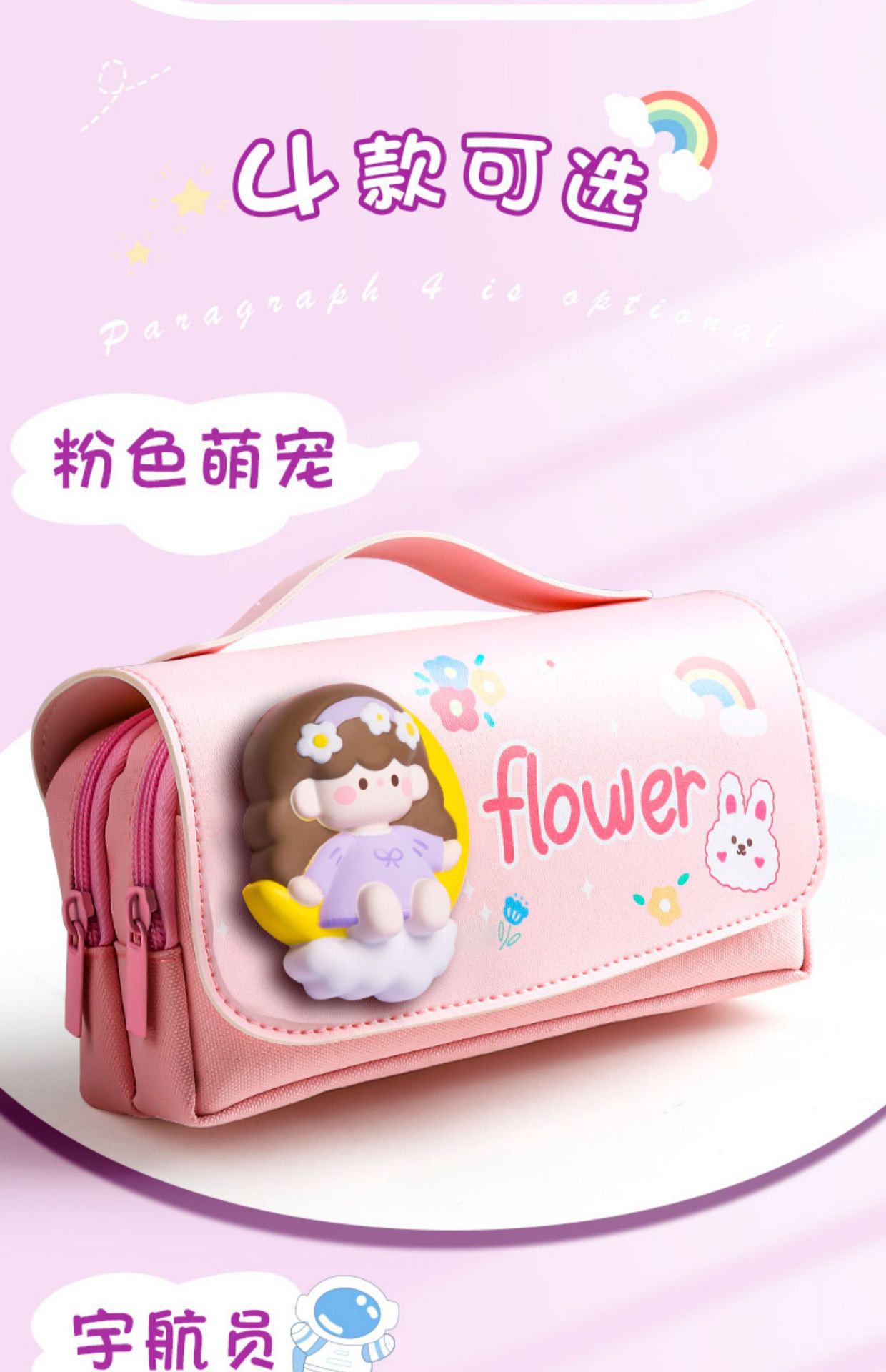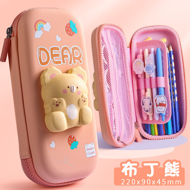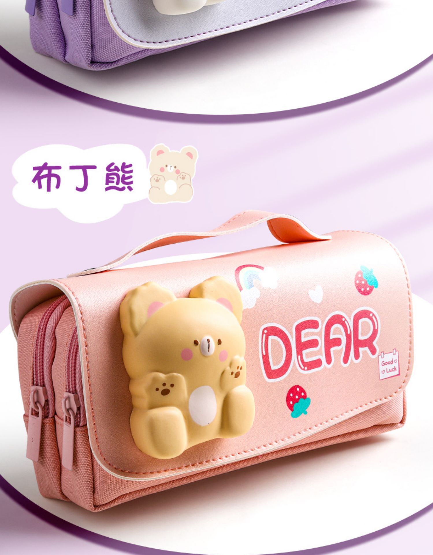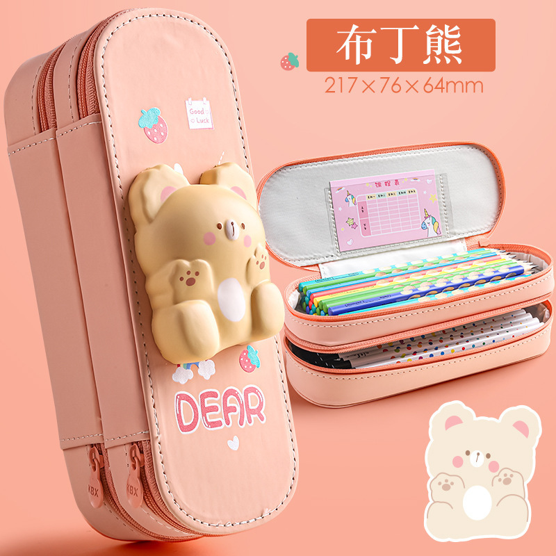 Kaba Bear 감압 필통 어린이 필통 다기능 소녀의 대용량 문구 가방 이중 감압 문구 케이스스토어 가기