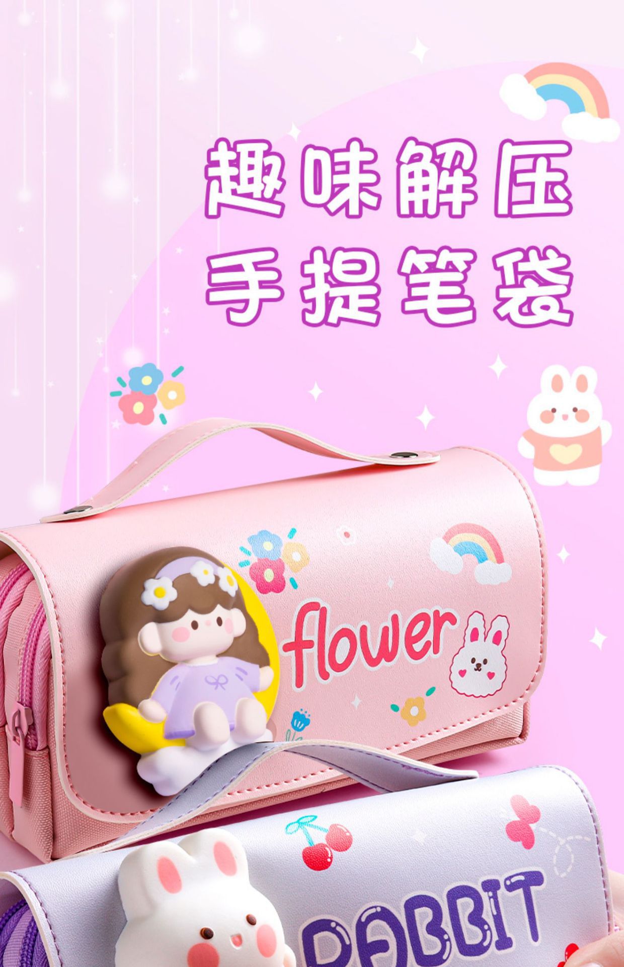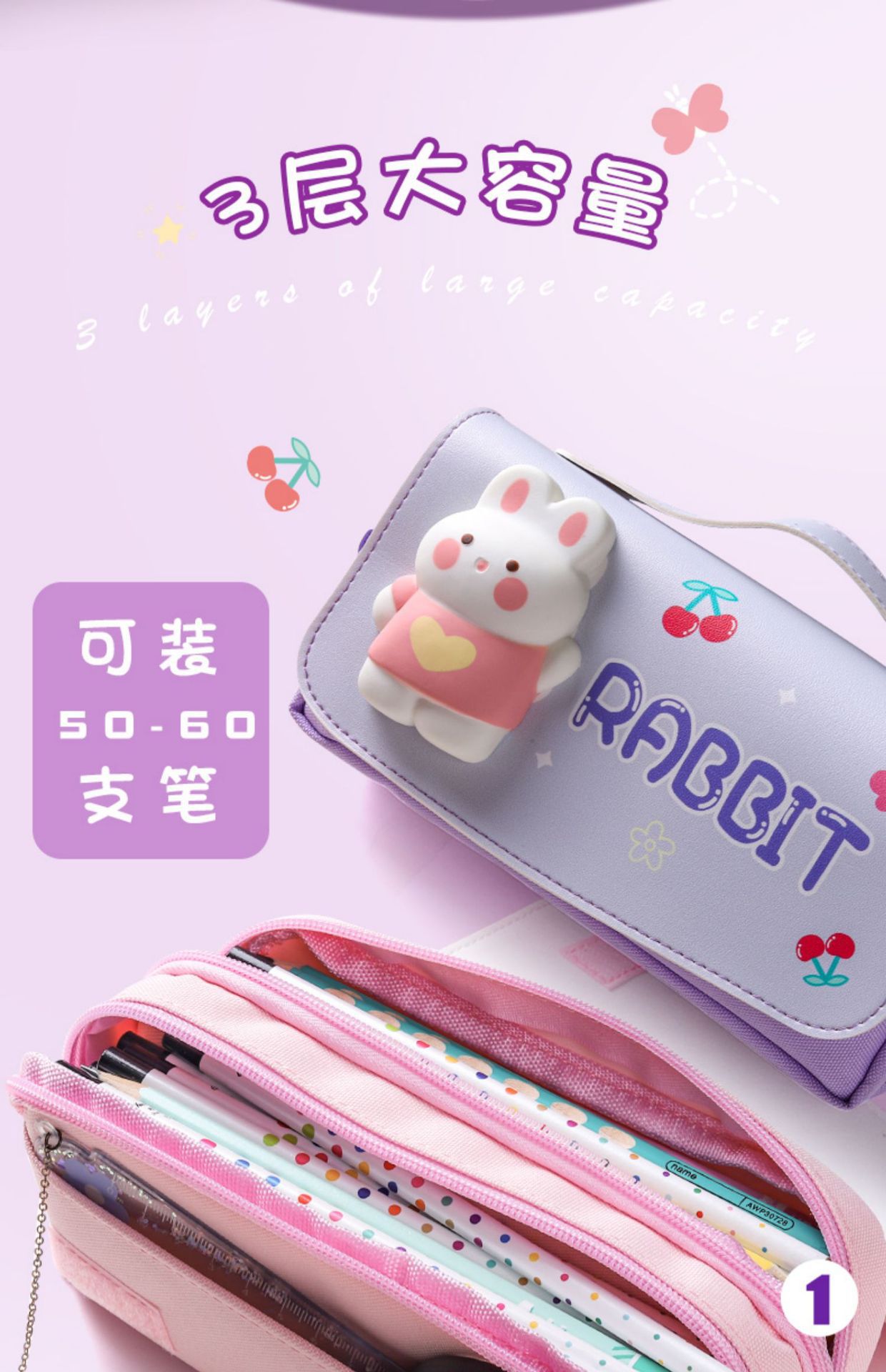 • 감압 더블 레이어 휴대용 필통-연인 토끼 [싱글]]