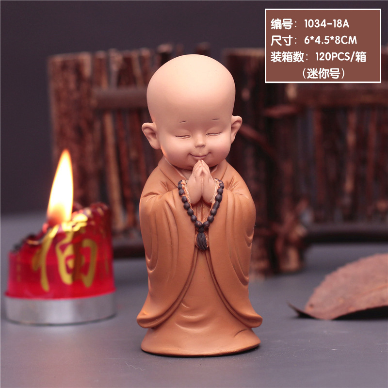 소림사 어린 승려 자동차 장식용 레진 공예품 세트, 화능 미니 승려 안전 소품 선물스토어 가기
