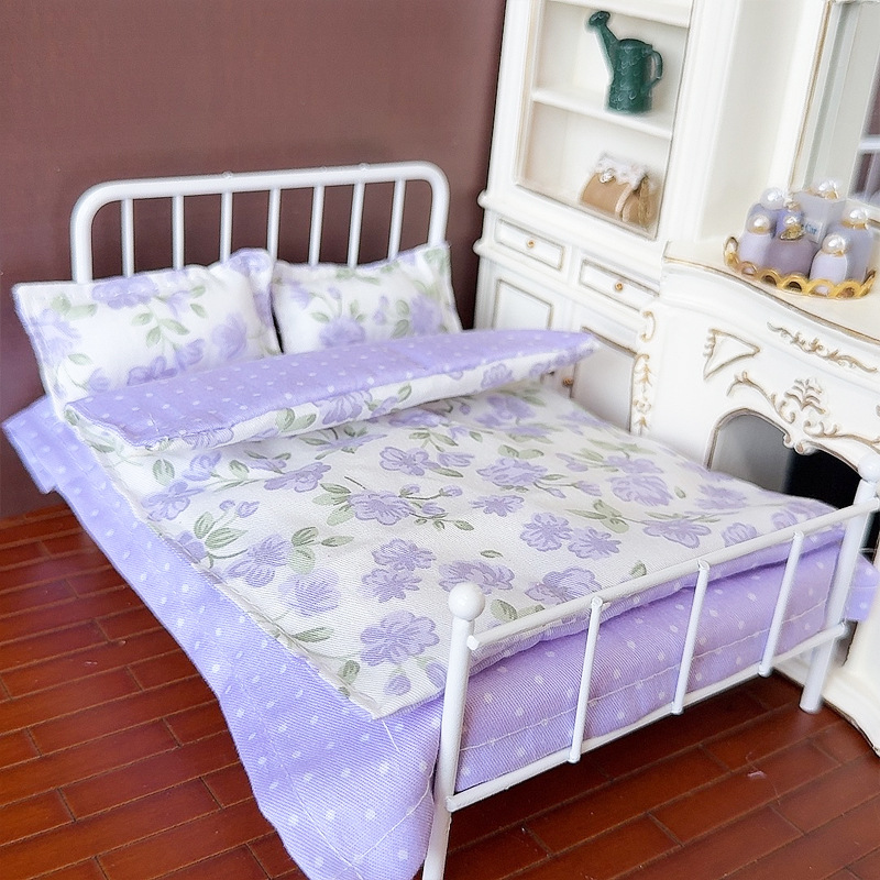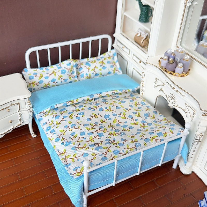 1:12 인형의 집 인형 집 미니 모델 OB11 침실 장면 수제 침구 침대 시트 이불 커버 베개스토어 가기