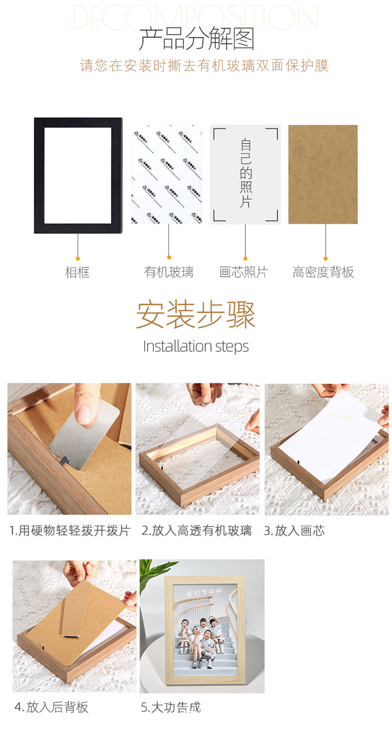 간단한 어린이 벽 설정 테이블 6 사진 프레임 7810 인치 A4 사진 벽 유치원 졸업 사진 단단한 나무 그림 프레임스토어 가기