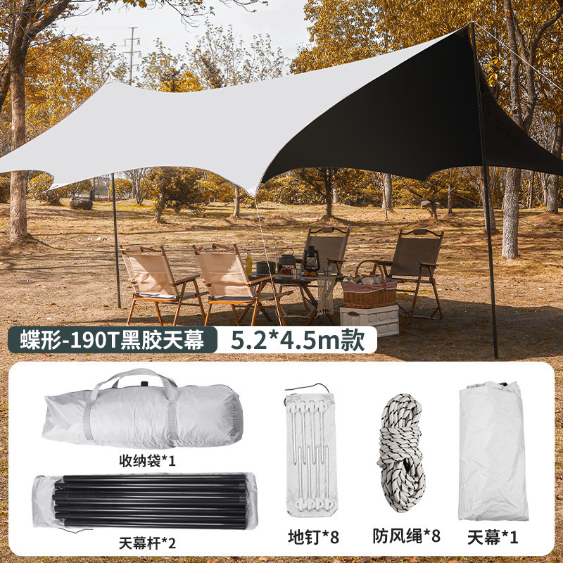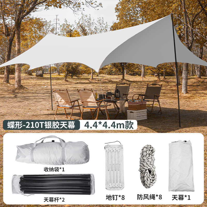 비닐 캐노피 텐트 야외 캠핑 캠핑 실버 코팅 대형 차양 자외선 차단제 피크닉 육각 나비 모양 Pergola 장비스토어 가기