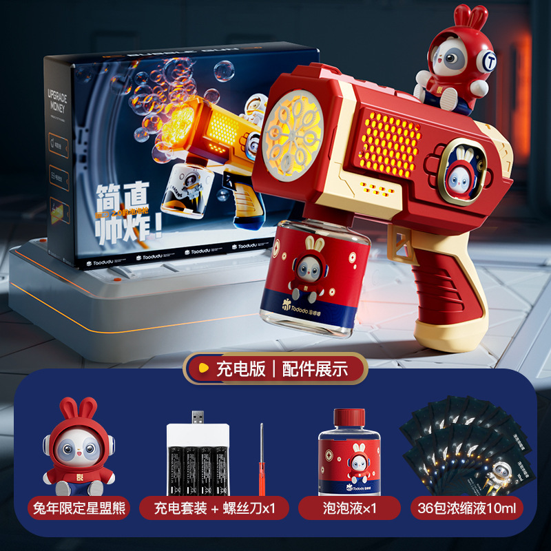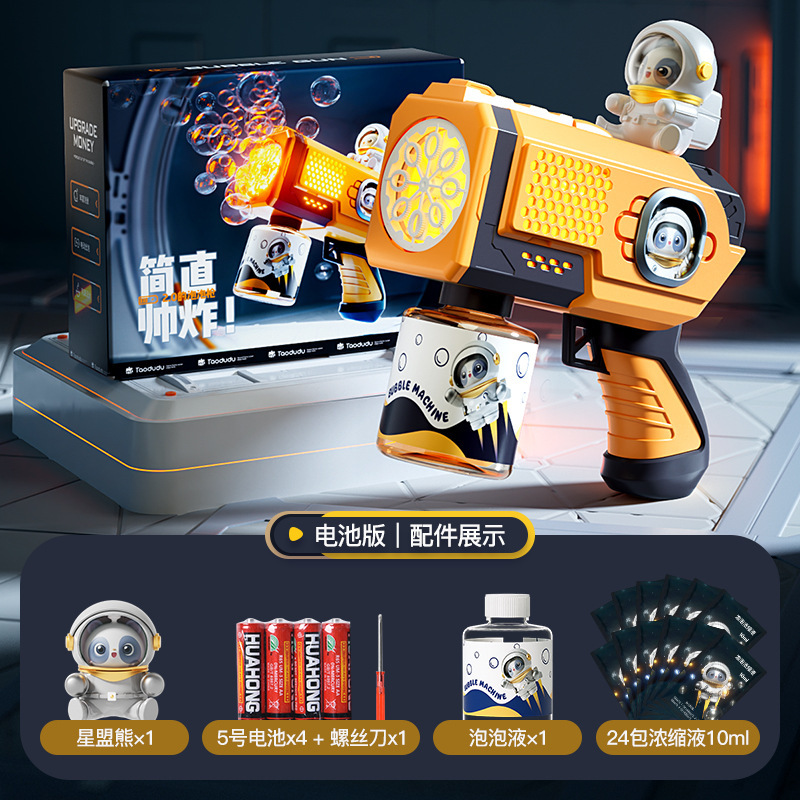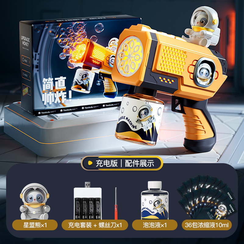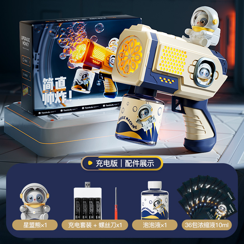 폭발 공간 버블 머신 개틀링 빛나는 어린이 휴대용 전기 소형 강철 버블 건 장난감 공장 콘센트스토어 가기