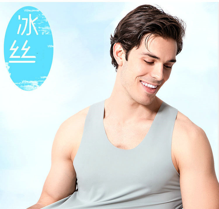 여름 아이스 센스 남성용 V-넥 조끼 비 마킹 아이스 실크 슬림 핏 스포츠 사계절 베이스 탄성 단색 홈 잠옷스토어 가기