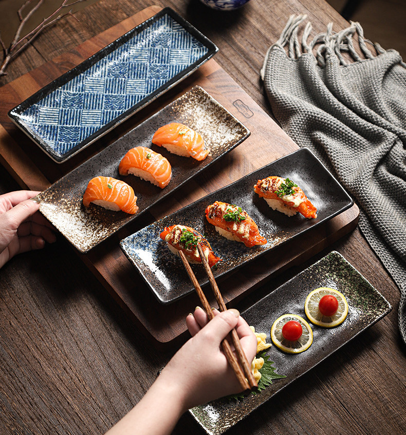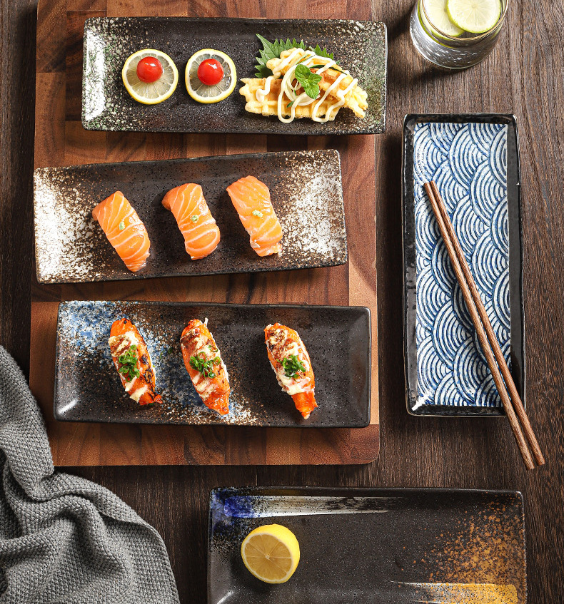 희미한 회 접시 용 일본식 스시 접시 긴 스트립 접시스토어 가기
