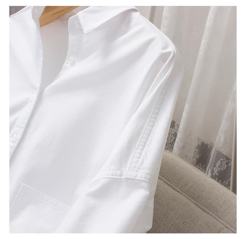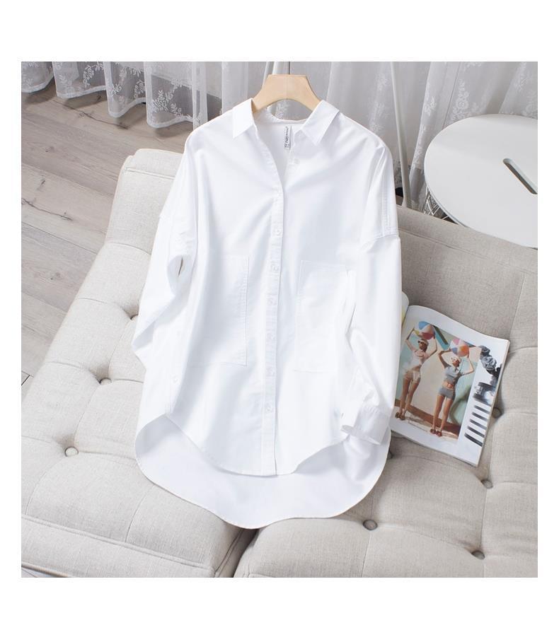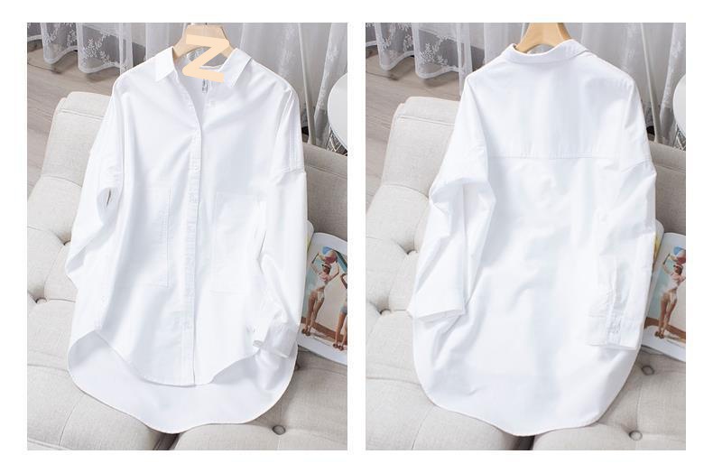 2025 봄 신상 한국 스타일 패셔너블 캐주얼 중간 길이 흰색 셔츠 여성용 다용도 슬림핏 면 흰색 셔츠 트렌디 여성용스토어 가기