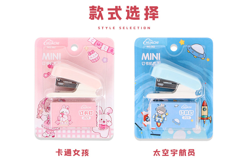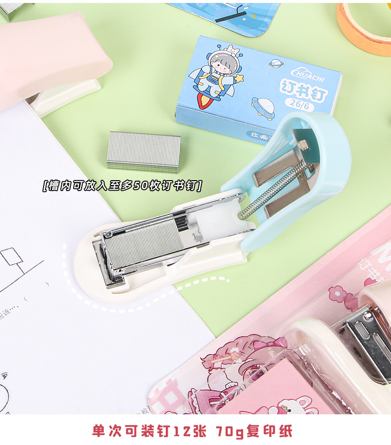 귀여운 만화 미니 스테이플러 세트 학생 휴대용 스테이플러 작은 바인딩 기계 사무실 용품 도매스토어 가기