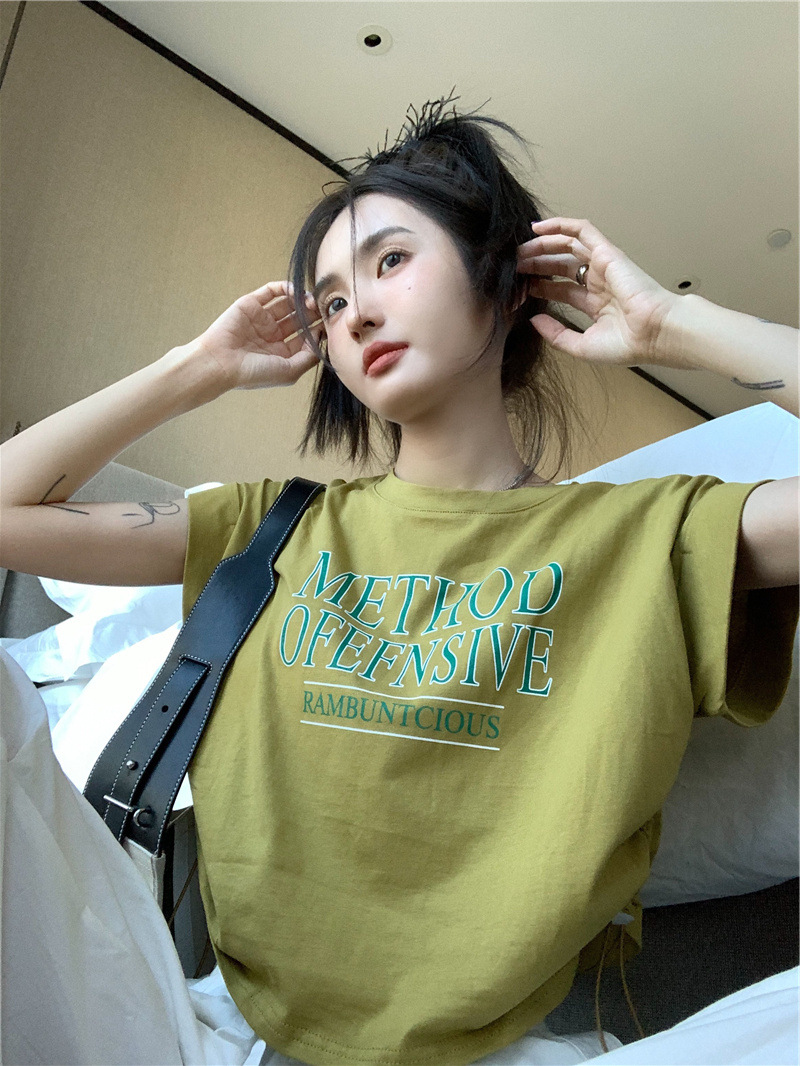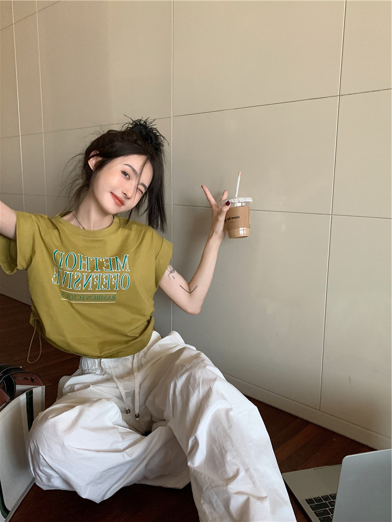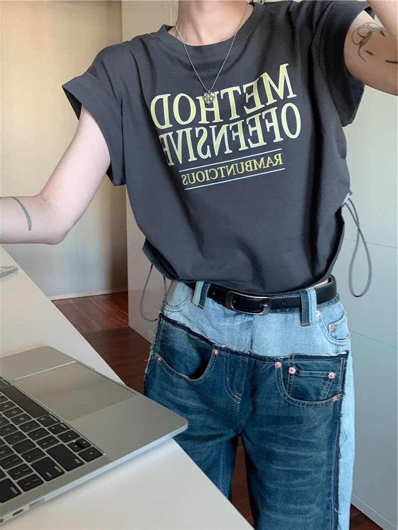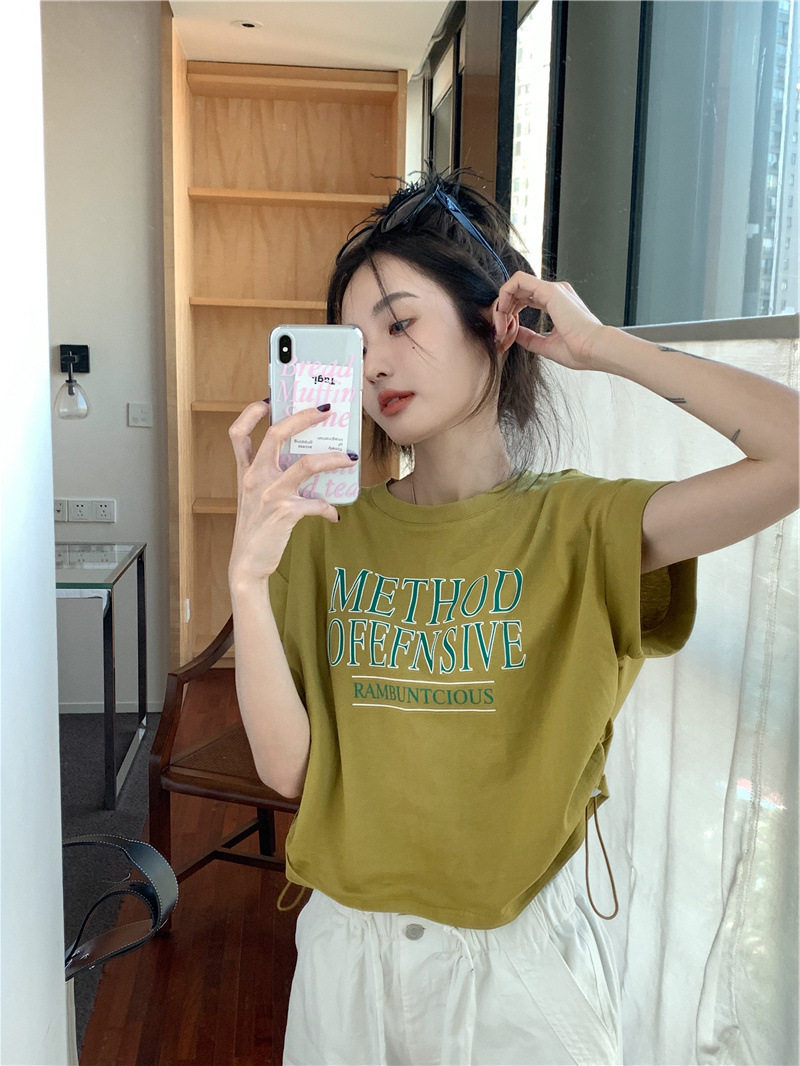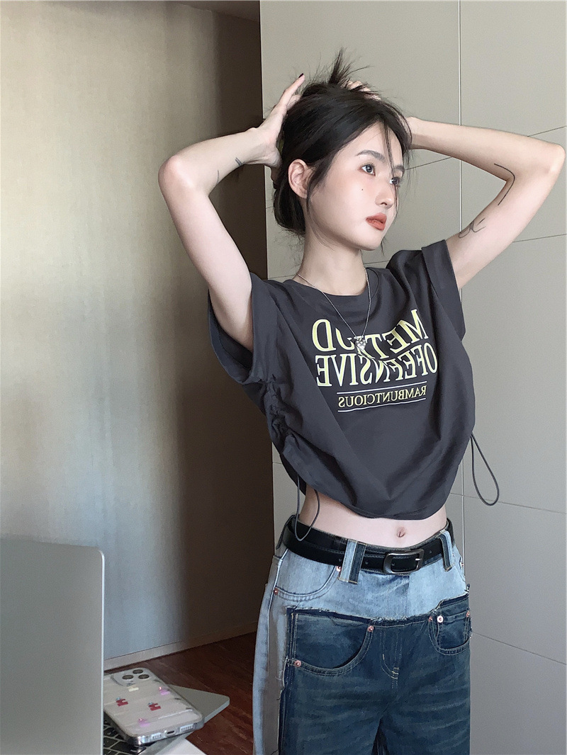 디자인 센스 반팔 티셔츠 여성 여름 불규칙한 틈새 새로운 한국 스타일 세련된 드로스트링 루즈 쇼트 탑 Ins스토어 가기