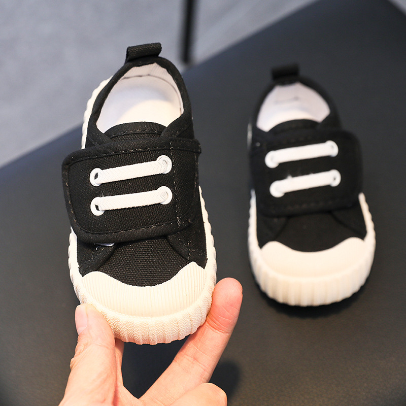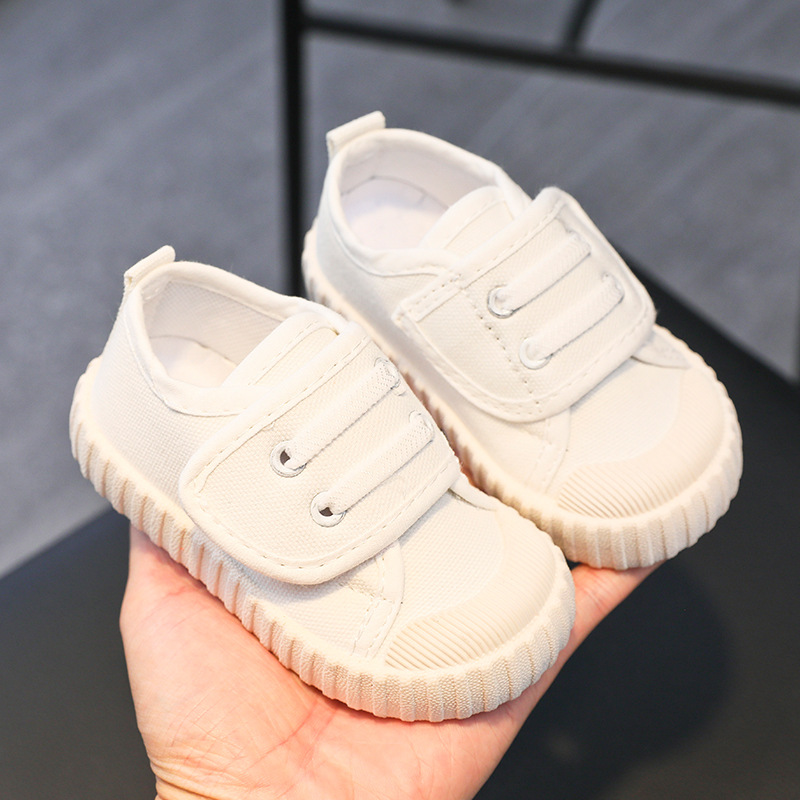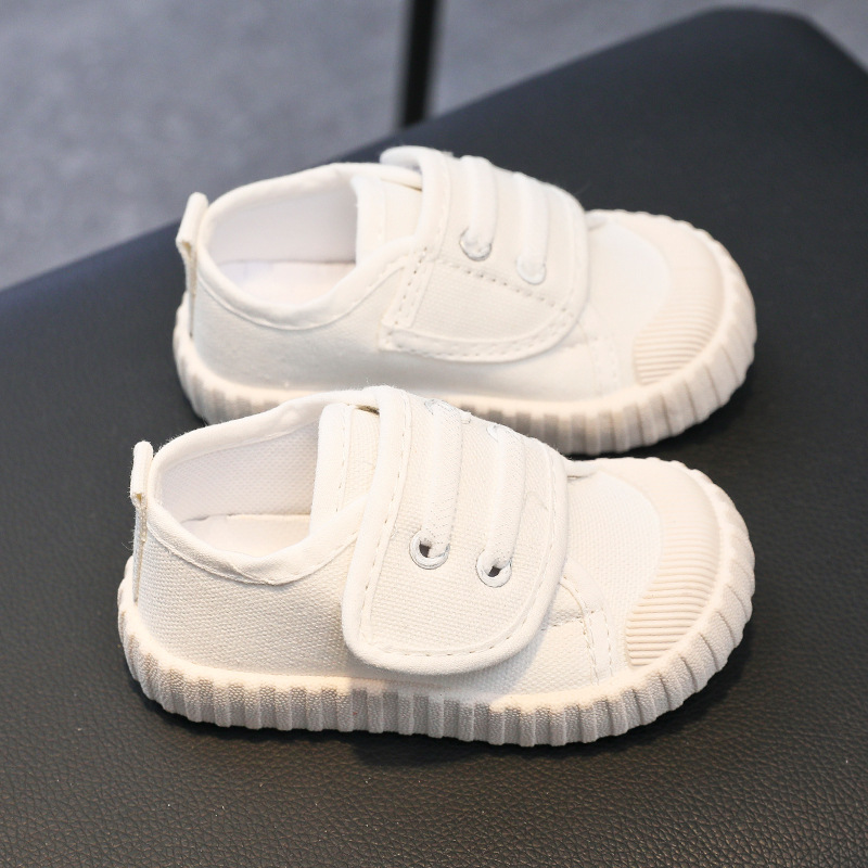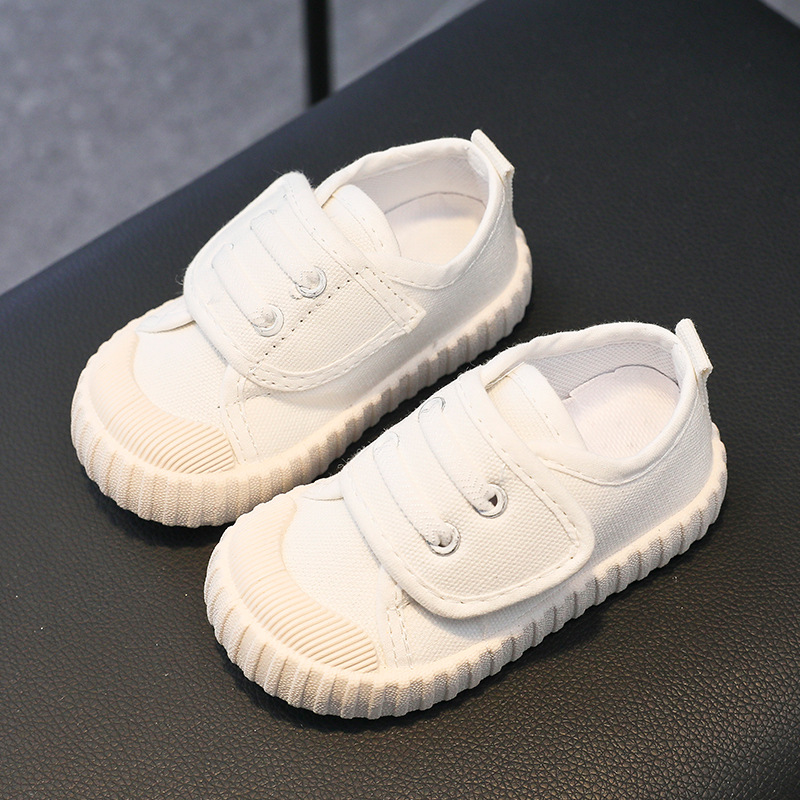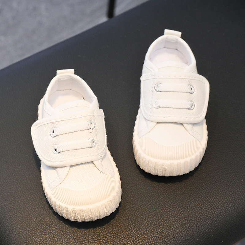 유치원 실내 신발 아기 부드러운 바닥 캔버스 신발 봄 소녀 흰색 신발 소년 신발 어린이 벨크로