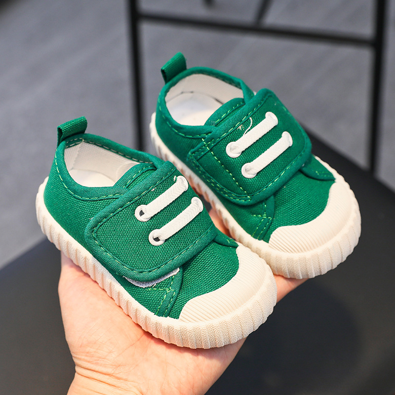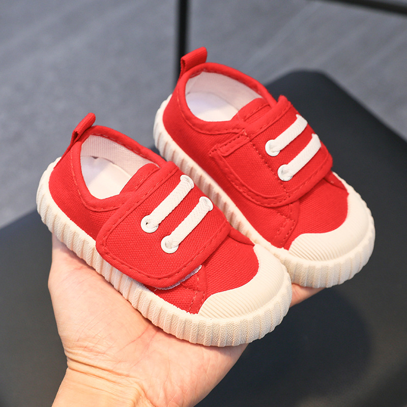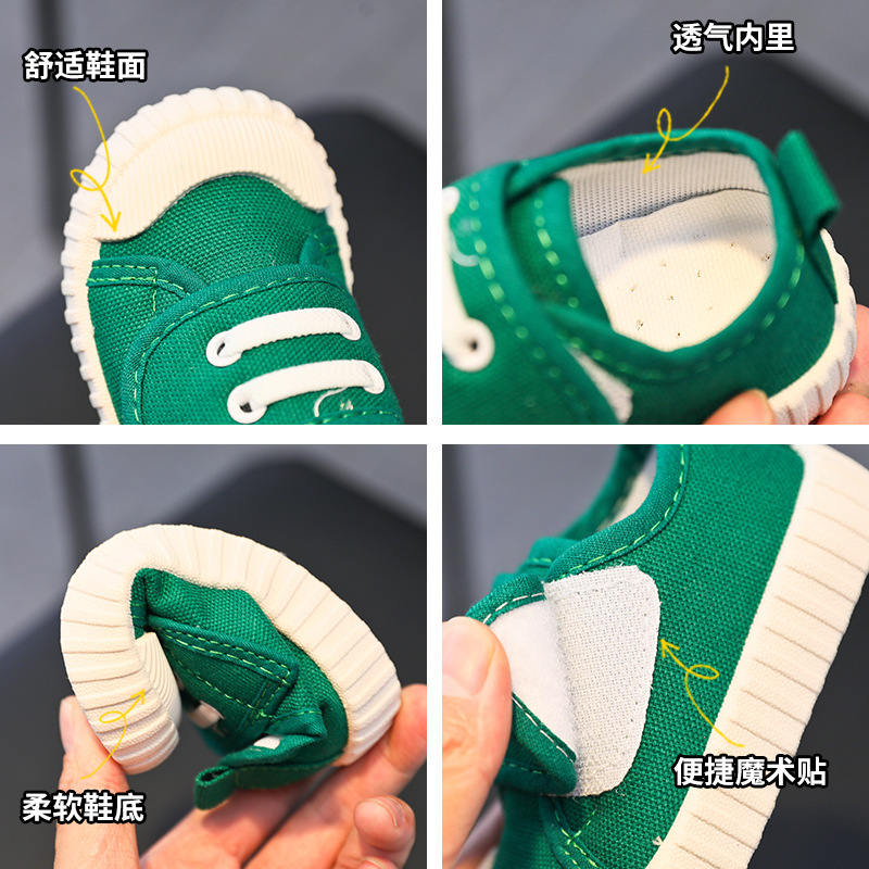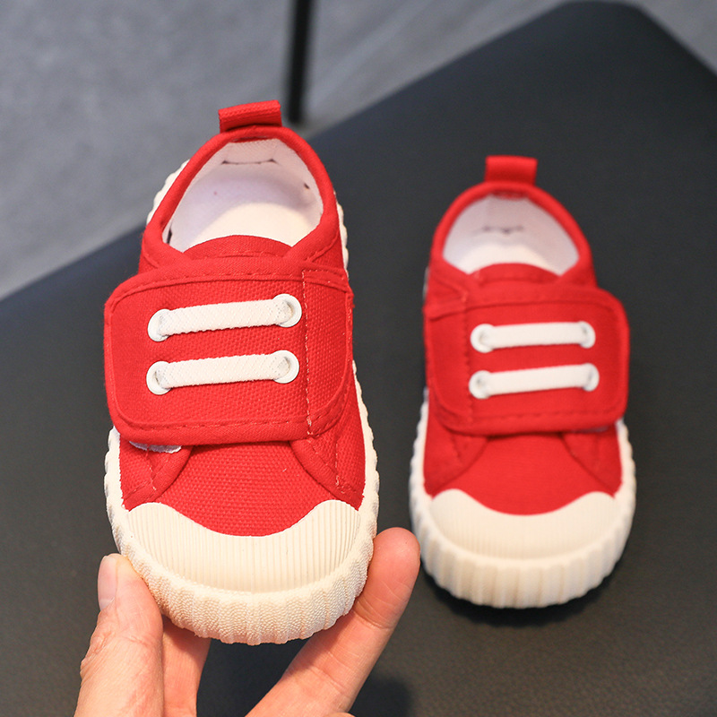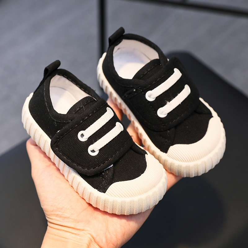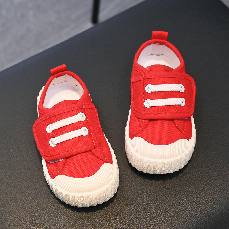 유치원 실내 신발 아기 부드러운 바닥 캔버스 신발 봄 소녀 흰색 신발 소년 신발 어린이 벨크로