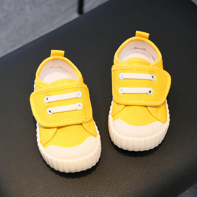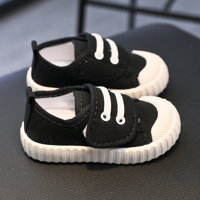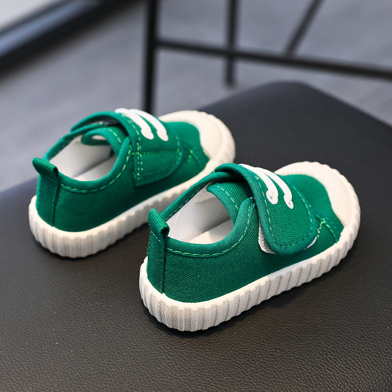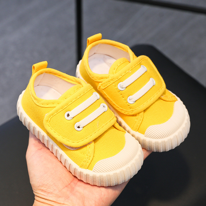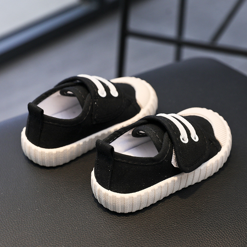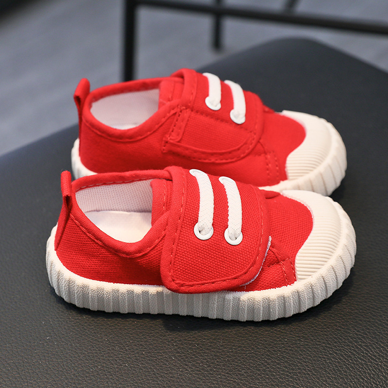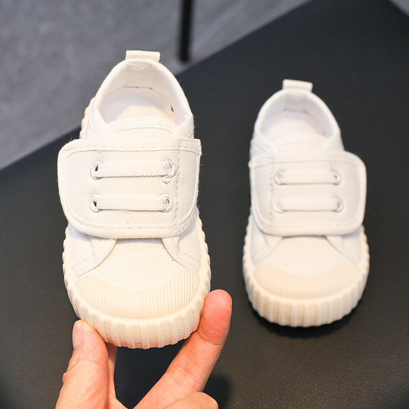 유치원 실내 신발 아기 부드러운 바닥 캔버스 신발 봄 소녀 흰색 신발 소년 신발 어린이 벨크로스토어 가기