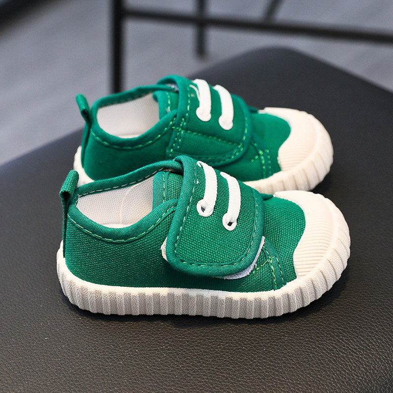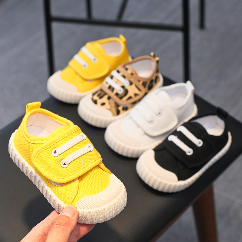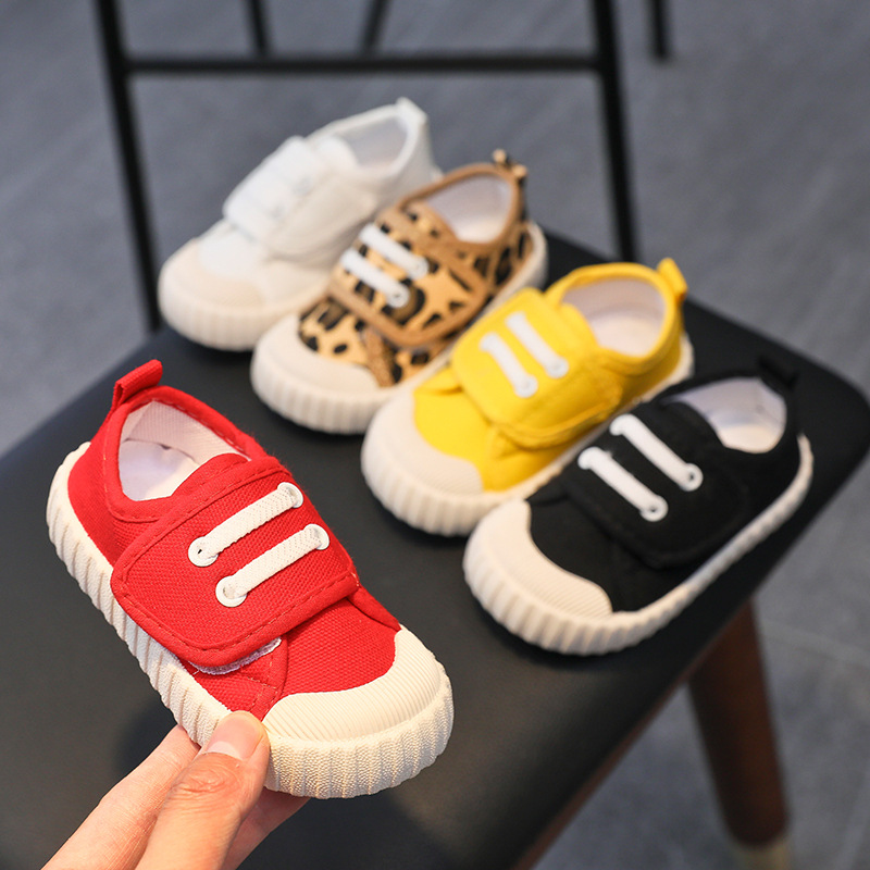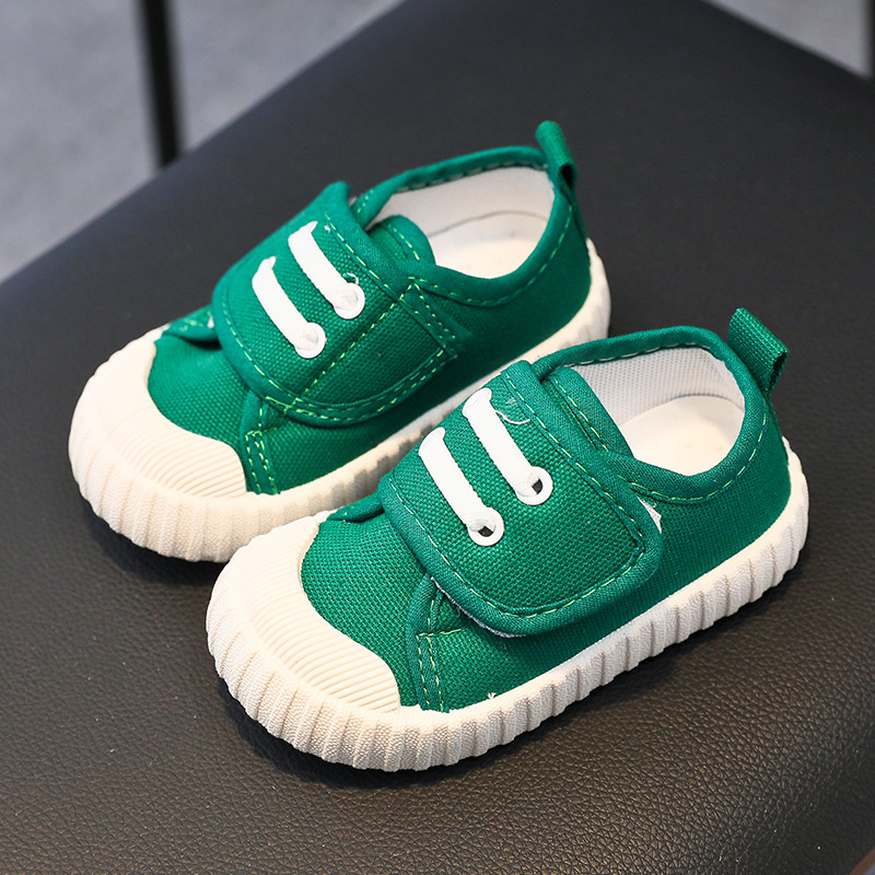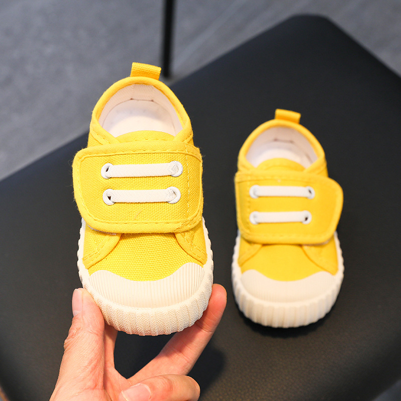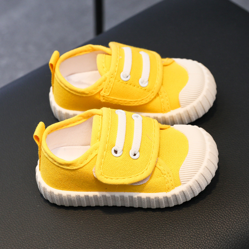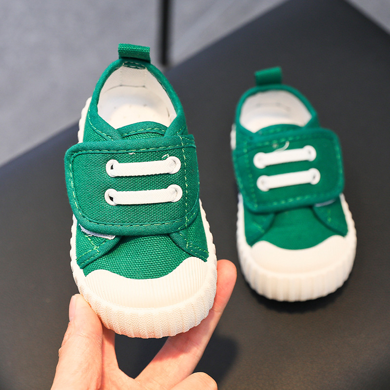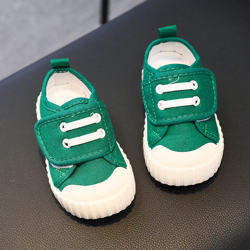 유치원 실내 신발 아기 부드러운 바닥 캔버스 신발 봄 소녀 흰색 신발 소년 신발 어린이 벨크로스토어 가기
