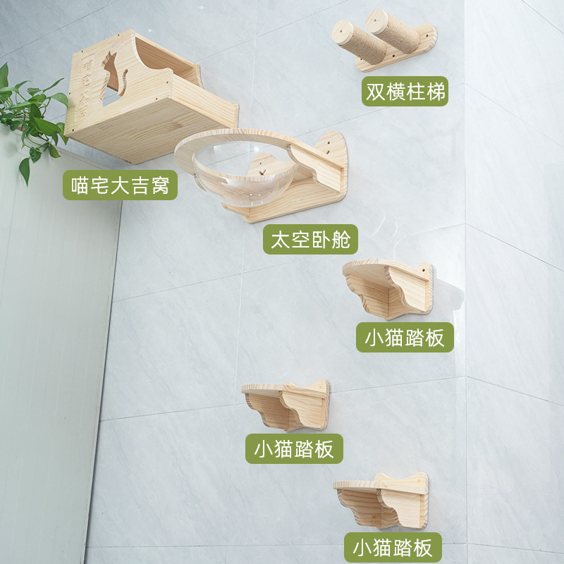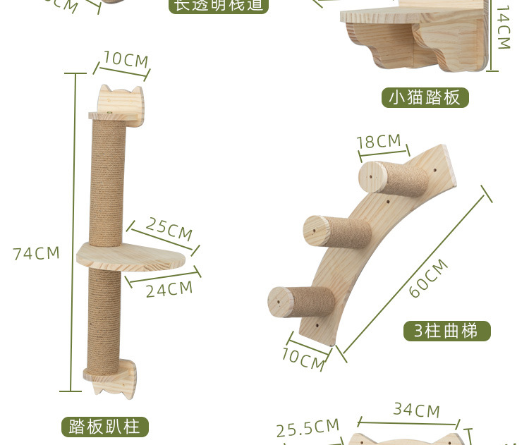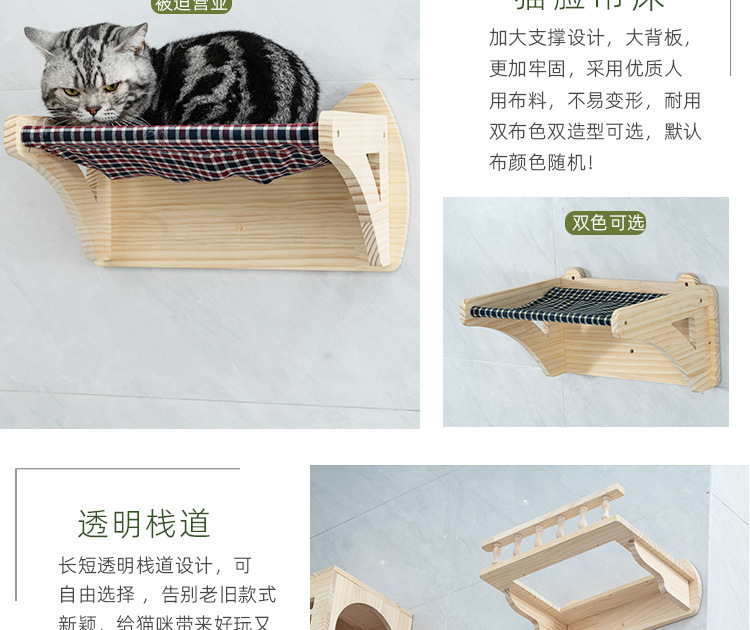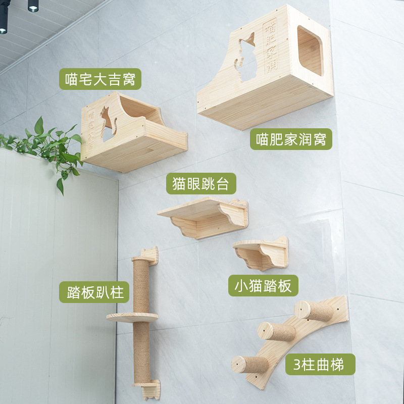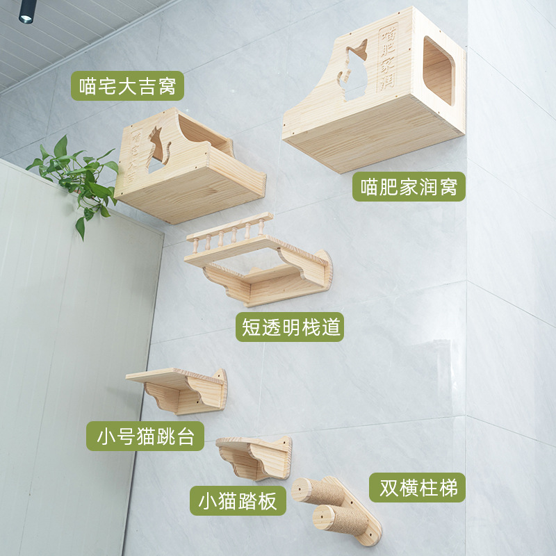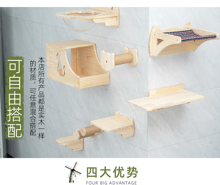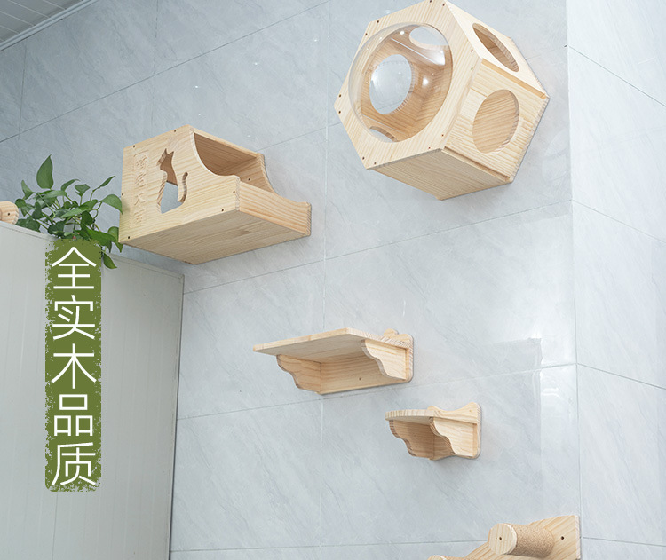 단단한 나무 고양이 벽 고양이 등산 랙 사이 잘삼 벽걸이 형 원통형 고양이 등반 랙 통합 등산 사다리 발판