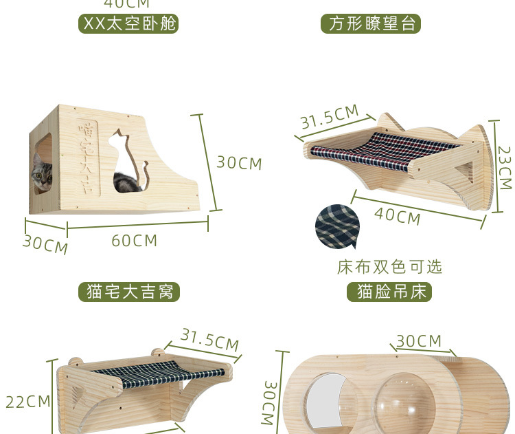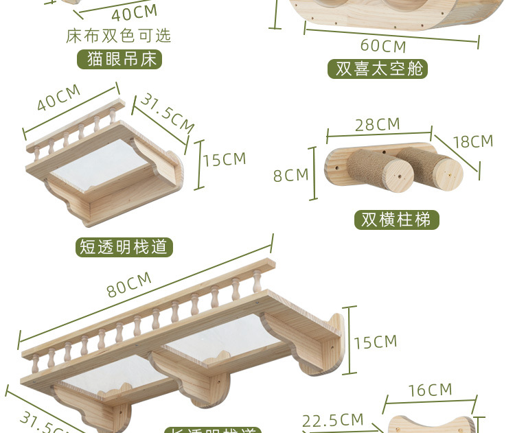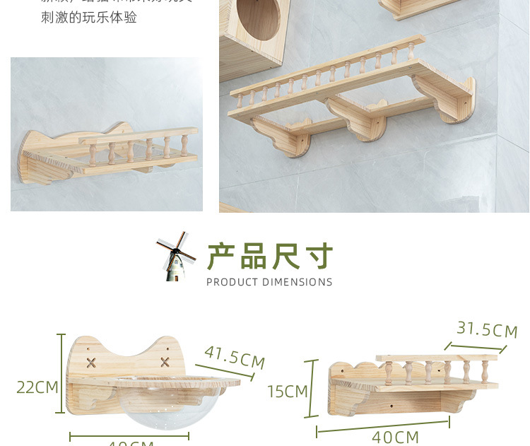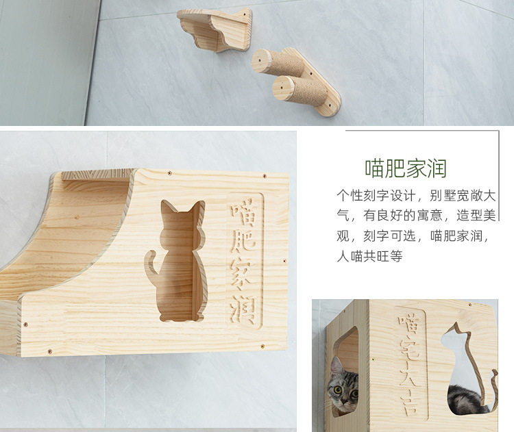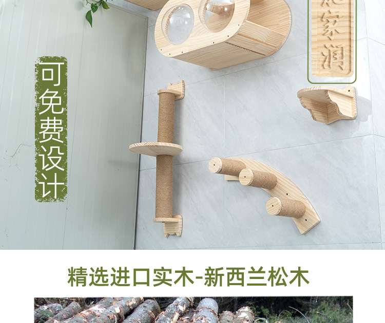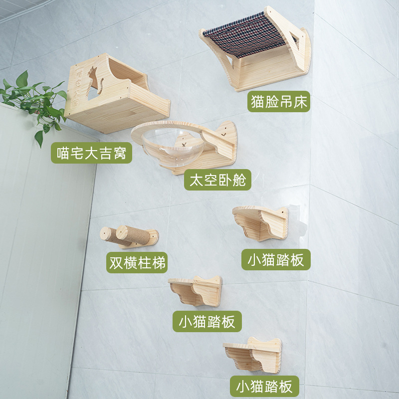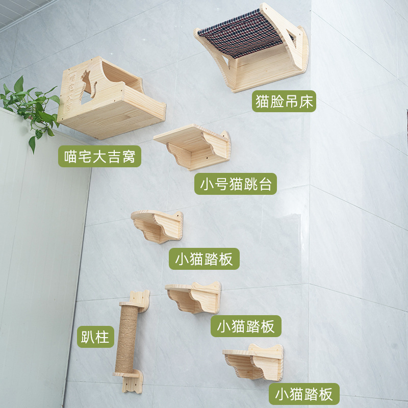 단단한 나무 고양이 벽 고양이 등산 랙 사이 잘삼 벽걸이 형 원통형 고양이 등반 랙 통합 등산 사다리 발판